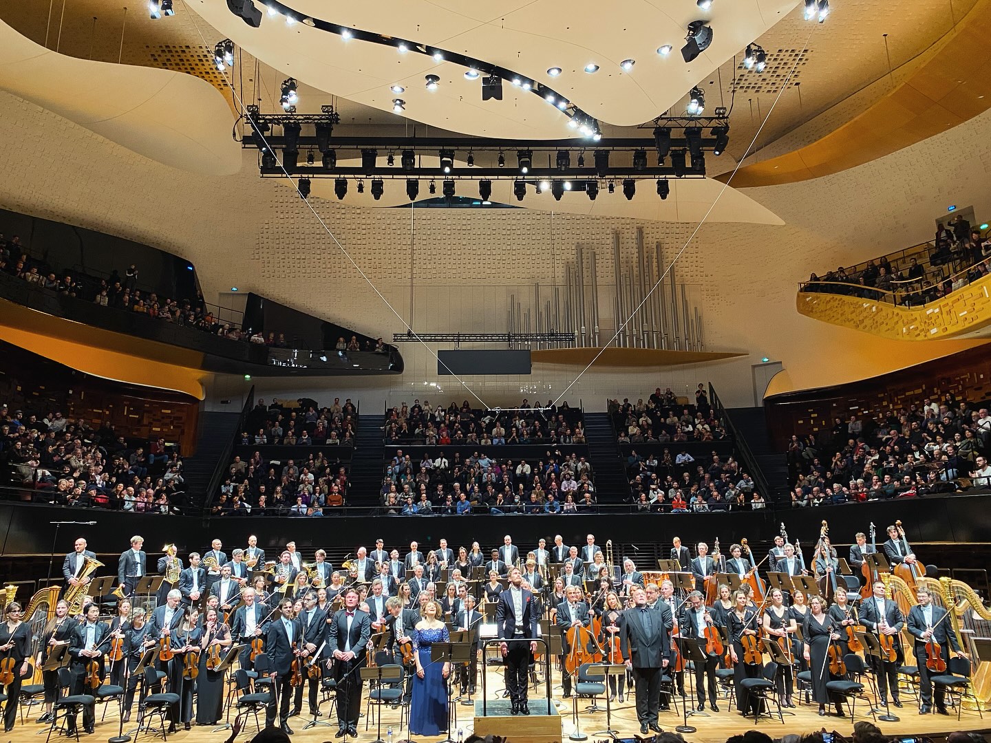 Last, but not least, l'Acte I de La Walkyrie de Richard Wagner ! Hommage, bien sûr, au chef Pierre Boulez. Mais, contrairement à la tournure abstraite de la musique de ce dernier, tout ici est atmosphère, tantôt tragique, tantôt guerrière, tantôt amoureuse. Deux choses à retenir avant tout : d'une part, l'extraordinaire vigueur et la finesse d'un orchestre constituant un personnage à part entière, sorte de narrateur omniscient, qu'il joue au complet, en pupitre exécutant un leitmotiv, ou réduit à un seul instrument, comme c'est le cas du violoncelle interprétant l'air de l'Amour ; d'autre part, la présence de trois chanteurs wagnériens : la soprano Johanni van Oostrum (Sieglinde), le ténor Klaus Florian Vogt (Siegmund) et le baryton-basse Falk Struckmann (Hunding), qui expriment finement toutes les inflexions vocales et la gestuelle autorisée par une version de concert. Mention spéciale pour le couple vedette, jumeaux qui ignorent leur parenté, mais tombent instantanément amoureux l'un de l'autre… Aussi les auditeurs sont-ils immédiatement plongés dans ce début d'opéra très dramatique et nimbé de fantastique médiéval. Remplie ce soir, la Grande Salle Pierre Boulez explose alors en hourras pour saluer la performance des musiciens.