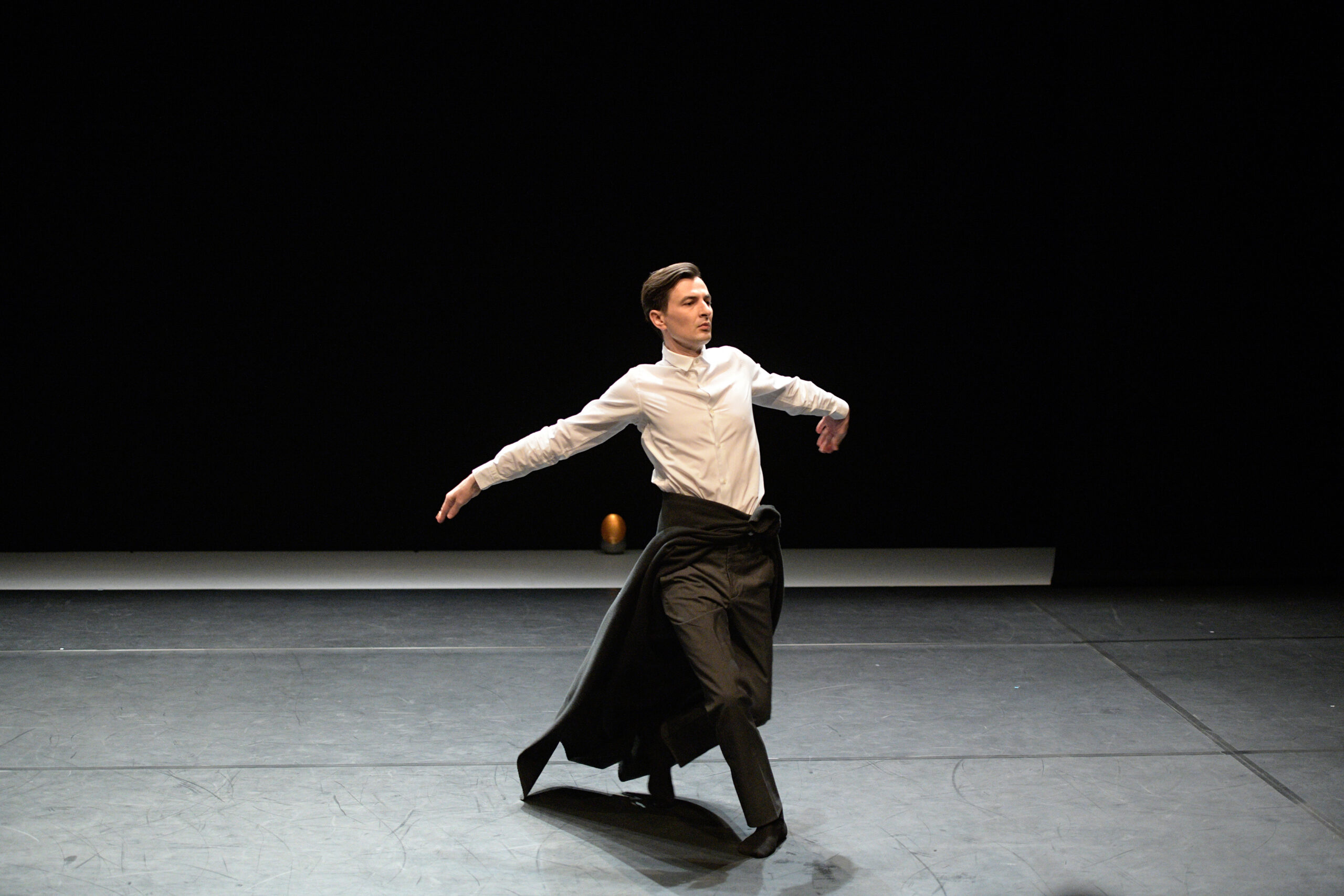 Précision et qualité du mouvement, tenue impeccable et mèche parfaitement peignée, tout en Emmanuel Eggermont respire la netteté et l'exactitude. Pourtant, de Nijinsky à Gene Kelly, de Joséphine Baker à la Callas, il se glisse dans la peau des plus grandes bêtes de scène pour un solo à la fois exubérant et impeccable. On y croise les fantômes de divas, comme Judy Garland ou la Callas, et sur une bande-son jubilatoire, la voix de Raimund Hogue récitant un poème en allemand, deJakub Józef Orliński chantant Purcell ou de Rosemary Standley chantant « Johnny guitar ». L'émotion affleure partout dans ce solo à la fois pudique et tendre.