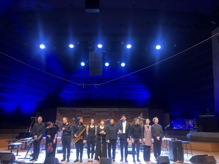 Le geste est beaucoup plus risqué et le corps tout entier investi dans Numbers, la nouvelle pièce de Pierre Jodlowsky avec électronique qui termine haut et fort le premier concert de la journée. Jodlowsky fait appel à l'IA pour générer les voix qui comptent et racontent dans toutes les langues. Le percussionniste est au taquet, qui déclenche l'électronique en frappant sauvagement sur la peau d'un tambour ; un état de haute tension est entretenu entre les morphologies de l'électronique et les réponses musclées des instrumentistes. Humour et dérision sont à l'œuvre dans ce théâtre sonore éminemment conduit et virtuose, engageant aux manettes Étienne Desmoulin et les formidables musiciens de Cairn sous l'autorité de Guillaume Bourgogne. (MT)
