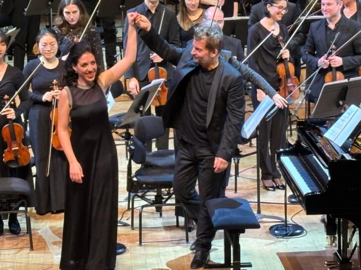 L'espace est également convoqué dans le Concertino pour piano et orchestre – omaggio a Luciano Berio, d'Éric Montalbetti qui conçoit son écriture orchestrale comme la caisse de résonance amplifiée du piano. Le compositeur a inversé la trajectoire habituelle du concerto, débutant et finissant sa pièce par des mouvements lents. Les arpèges ascendants sous le jeu articulé de Beatrice Rana font miroiter les échelles modales qui texturent l'écriture du compositeur. Si l'élan vers des aigus lumineux nous évoque Scriabine, la toccatina nerveuse et ses notes répétées au centre de la pièce semblent un clin d'œil à Boulez, laissant apprécier la brillance du jeu de Beatrice Rana. L'orchestre se fait l'écho du piano, agrandissant d'autant l'espace de résonance dans une dernière partie, Adaggietto, plus sombre, dont le mouvement se fige progressivement, le compositeur optant pour une fin aussi délicate que suspensive.
