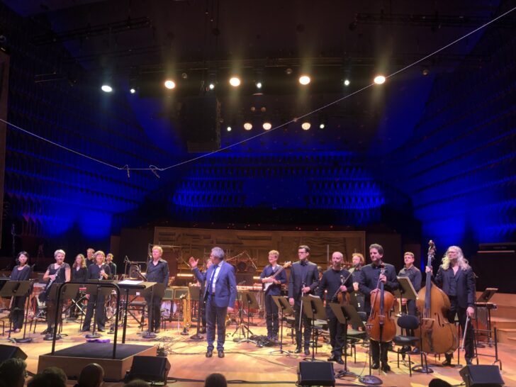 Dans Un posto nell'acqua – Melville-Skizze (2009), Olga Neuwirth inclut dans l'ensemble instrumental une guitare électrique, un échantillonneur et un piano électrique (Fender Rhodes). C'est sans doute l'une des plus belles pièces entendues dans cette édition. Elle appartient au triptyque inspiré par la vie et l'œuvre d'Hermann Melville, et plus précisément ici par son Moby Dick : l'espace sonore est largement ouvert, accueillant résonances, scintillements, cloches lointaines, rumeurs et mouvements de l'océan dans un cheminement narratif émaillé de trouvailles sonores, d'allusions furtives et autres morphologies qui servent la dramaturgie. Jean-Philippe Wurtz et les musiciens de l'ensemble Linea confèrent à la pièce une dimension quasi symphonique, immersive et fantastique, un flux continu qui s'interrompt pourtant brutalement sur un claquement d'archet sans appel de la contrebasse.