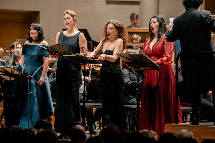La distribution des solistes vocaux – parmi lesquels nous retrouvons quelques protagonistes du récent Ring wagnérien bruxellois – nous a semblé un soupçon inégale. La soprano Manuela Uhl (première soprano et Magna Peccatrix) remplace presque au pied levé Michaela Kaune souffrante et, malgré un timbre idoine et de très bonnes intentions, semble parfois, malgré une remarquable projection, quelque peu sur la réserve, là où Jacquelyn Wagner, seconde soprano et pénitente au gré de la scène de Faust, joue fort à propos la carte d'une vocalité plus extravertie. Ilse Eerens, est parfaite pour sa courte intervention, lumineuse et stratosphérique, donnée depuis le balcon, en Mater Gloriosa, sorte de réincarnation céleste de Gretchen. Les deux mezzo-sopranos sont idéalement complémentaires ; Nora Gubisch, en Mulier Samaritana, récente Waltraute dans le Götterdämmerung, compense un timbre légèrement délavé ou poitriné par une très belle intelligence du texte, là où Marvic Monreal, en Maria Aegyptiaca (et première Norne dans le même récent Crépuscule des Dieux) s'avère vocalement plus homogène de timbre et expressivement marquante.