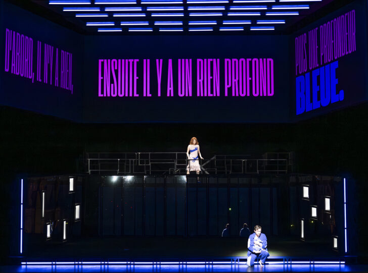 Juliette ou la Clé des songes n'est pas en reste d'exigence avec sa distribution pléthorique : du Petit Arabe du début au Vieil Arabe de la fin, de sa presque trentaine de rôles chantés (et parlés) par seize artistes tous à citer, on retiendra le lumineux soprano d'Elsa Roux Chamoux, l'autorité de Paul Gay, la basse parfaitement projetée de Louis Morvan, l'omniprésent Samy Camps, de surcroît excellent acteur, aussi drôle en Samu 06 que bien flippant en scanneur zinzin. Tous parlent un français impeccable. C'est moins le cas avec la Juliette d'Ilona Revolskaya, même si l'on succombe au velours qu'elle déroule durant les rares torrents passionnels. Quant au Michel d'Aaron Blake, on serait malvenu de chipoter telle ou telle voyelle manquante, le jeune ténor américain ayant rendu possible l'impossible en remplaçant (sans connaître un mot de français) un Valentin Thill déclarant forfait à la veille du premier jour des répétitions ! Pour parvenir en si peu temps à pouvoir incarner ce rôle écrasant qu'aucun chanteur ne connaît à l'heure actuelle dans la langue de Molière, Aaron Blake a été muni d'une oreillette. Et c'est avec un bonheur fou qu'aux saluts, ce Michel venu d'Amérique a tenu à fêter son ahurissante performance en compagnie de l'homme qui, durant toute la représentation aura dû murmurer à l'oreille du ténor. Un ténor dont la prestance scénique, les aigus juvéniles et assurés auront fait de lui une révélation. Sous la baguette d'Antony Hermus, l'interprétation magistrale de l'Orchestre Philharmonique de Nice de cette œuvre très remuante, participe grandement à la réussite d'un choc esthétique qui n'est pas sans faire écho à celui vécu par le héros de Martinů.
