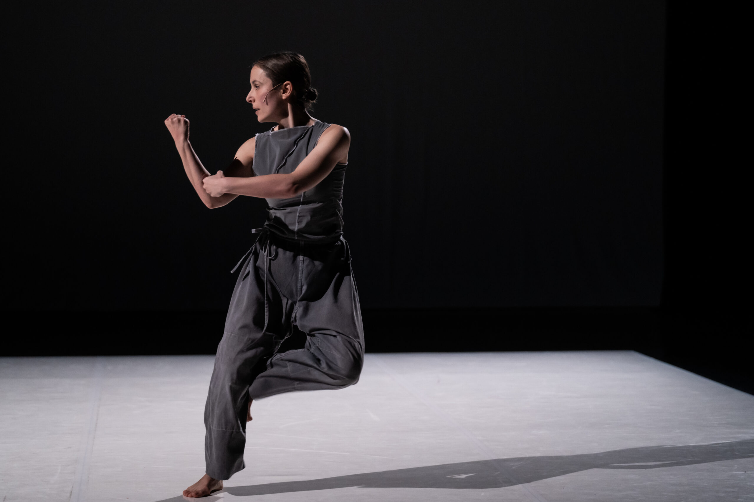 Danseuse et chorégraphe, s'est déjà intéressée au sport, et plus particulièrement à la gymnastique, à travers le spectacle Dirty dancers, en collaboration avec Grégoire Schaller. Au-delà de la gymnastique, ce qui a valu au spectacle d'être sélectionné dans le cadre des Olympiades culturelles, le destin de la gymnaste roumaine Nadia Comaneci formait la trame de ce spectacle étonnant. Pour Kata, sa nouvelle création en solo dans le cadre de sa résidence longue à l'Étoile du Nord, a utilisé les formes du karaté comme base chorégraphique d'un solo austère, dont on comprend peu à peu les ressorts et la dramaturgie. Le dispositif de sonorisation, la lumière, la scénographie et plus encore la dramaturgie tiennent en effet à distance le spectateur, rendant de prime abord hermétique le concept choisi.