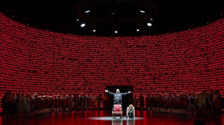 Genève. Grand Théâtre. 25-III-2025. Modeste Moussorgski (1839-1881) : La Khovantchina, drame musical en cinq actes sur un livret du compositeur et de Vladimir Stassov (orchestration de Dimitri Chostakovitch avec finale d’Igor Stravinsky). Mise en scène : Calixto Bieito. Décors : Rebecca Ringst. Costumes : Ingo Krügler. Lumières : Michael Bauer. Vidéo : Sarah Derendinger. Dramaturgie : Beate Breidenbach. Avec Dmitry Ulyanov, Prince Ivan Khovanski ; Arnold Rutkowski, Prince Andrei Khovanski ; Dmitry Golovnin, Prince Vassili Golitsine ; Vladislav Sulimsky, Le boyard Chakloviti ; Taras Shtonda, Dosifeï ; Raehann Bryce-Davis, Marfa ; Liene Kinča, Susanna ; Michael J. Scott, Le Clerc ; Ekaterina Bakanova, Emma ; Igor Gnidi, Varsonofiev ; Emanuel Tomljenović, Kouzka ; Remi Garin, Strechniev, Un confident de Golitsine, Un jeune héraut ; Vladimir Kzakov, Premier Strelets ; Mark Kurmanbayev, Deuxième Strelets. Maitrise du Conservatoire Populaire de Genève / Choeur du Grand Théâtre de Genève (Chef de chœur : Mark Biggins). Orchestre de la Suisse Romande, direction : Alejo Pérez