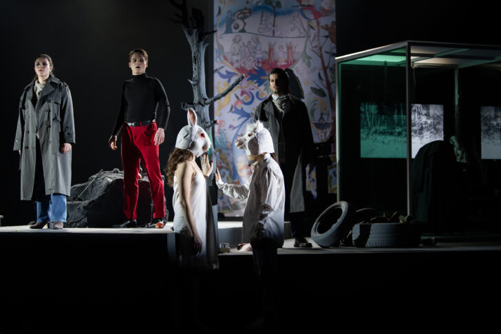 Le spectacle a lieu au Prinzregententheater, l'un des plus beaux théâtres d'opéra qui soit ; il se trouve que Written on Skin y a déjà été donné dans la foulée de la création aixoise. La mise en scène chic et toc de Katie Mitchell est désormais oubliée : un nouveau spectacle est conçu pour les élèves, avec force impressions 3D, par Balász Kovalik, directeur des études lyriques de l'Académie de théâtre August Everding, qui regroupe les études théâtrales des différentes universités de Munich.