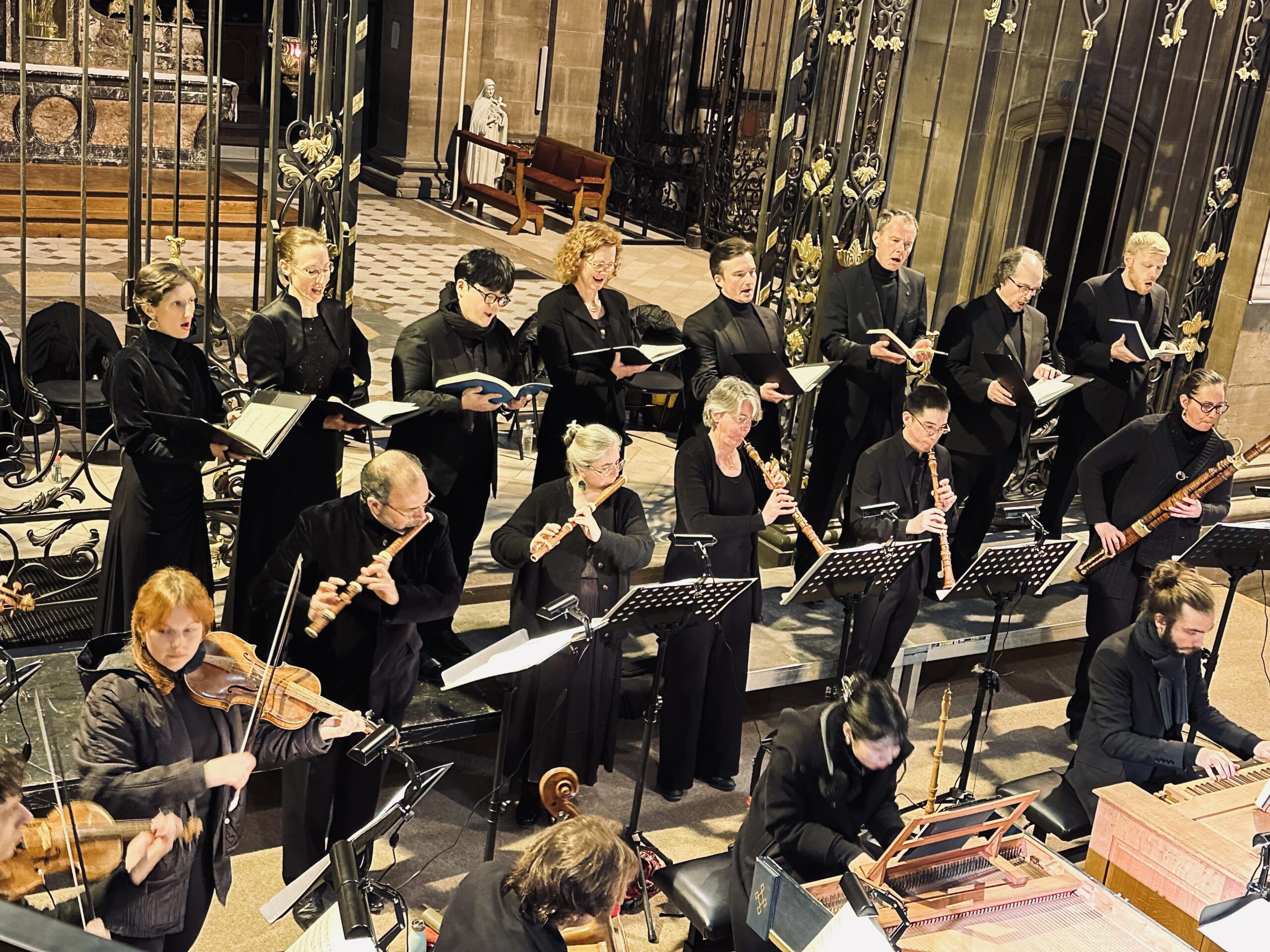 Comme on peut l'entendre sur la carte de visite que pourrait constituer un Lasset uns den nicht zerteilen où la vélocité et articulation semblent se vampiriser l'une l'autre, l'appellation du chœur n'est en rien usurpée, les huit voix révélant une totale aptitude à l'homogénéité chorale, à la modulation (le choral Wer hat dich so geschlagen est chanté à un par voix), une assurance face aux chausse-trappe (les redoutables Wohin? d'un Eilt, ihr angefocht'nen Seelen haletant), mais surtout un bouquet de solistes plutôt superlatif : la tranquille intériorité de l'alto d'Ulrike Andersen sur Von den Stricken; le moelleux charnu de Lucia Boisserée sur Zerfliesse, mein Herz ; la grâce aérienne de Johanna Ness sur un Ich folge dir gleichfalls aux paroles revues et corrigées (entre 1724 et 1749, Bach avait produit quatre versions de sa Saint Jean), comme le seront celles du Mein Jesu, ach (ex-Erwäge) de Thaddaus Böhm, ténor à la vocalité aussi tranquille (le chanteur manquera même de quitter étourdiment le plateau avant la reprise de son air, il est vrai, le plus long de la partition !) que celle de son partenaire Michael Schaffrath aura été tendue sur Ach mein sinn ; d'une stupéfiante assurance, le contre-ténor Yongbeom Kwong met l'assistance dans sa poche avec Es ist vollbracht. On remarque immédiatement le Pilate de Dominik Wörner, pointure (Sehet, dass ist euer König) qu'il ne ferait pas bon contredire, ainsi que le chœur s'y emploie sur le Mein teuer Heiland un peu extérieur du chanteur ; pas moins diseur, projetant un grave abyssal et clair, le noble et juvénile Jésus de Sönke Tams Freier transfigure chacun de ses récitatifs jusqu'à un Weib! Siehe, dass ist dein Sohn! totalement déchirant. A ce tableau quasi idéal on aurait aimé adjoindre Jan Kobow mais son Evangéliste s'étranglant sur les aigus n'est pas sans compromettre sa touchante proximité comme le fil narratif de cette Passion vibrante de passion, qui reprendra le lendemain son bâton de pèlerin jusqu'à Belfort, et le surlendemain jusqu'à Paris.