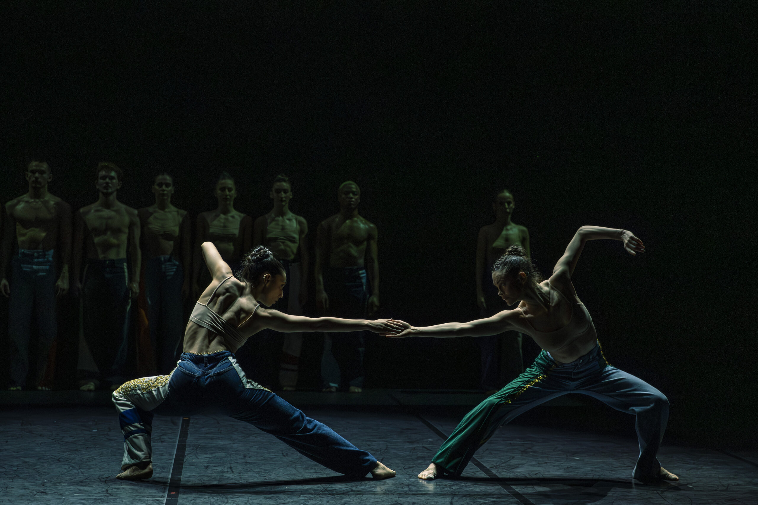 Résultat de cette très belle collaboration, les danseurs ne sont pas comprimés dans l'espace numérique de la projection, mais dans l'écriture du mouvement, spontané et immédiat. Les six danseurs du Ballet Preljocaj choisis pour la Première de cette reprise y excellent dans les mouvements incisifs et percutants, jambes projetées à la verticale et bras tendus à l'horizontale, tournoyant pour donner l'illusion du rotor qui impulse le mouvement.