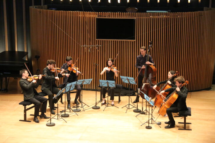 13-IV-2025. Richard Strauss (1864-1949) : Sextuor de Capriccio pour deux violons, deux altos et deux violoncelles. Métamorphosen, arrangement pour septuor à cordes de Rudolf Leopold. Johannes Brahms (1833-1897) : Valses 1 à 5. Danses Hongroises 1, 4, 5 & 6. Omer Bouchez ; Vassily Chmykov, violon. Paul Zientara ; Anna Sypniewski, alto. Stéphanie Huang ; Maxime Quennesson, violoncelle. Yann Dubost, contrebasse. Kojiro Okada, Gabriel Durliat, piano