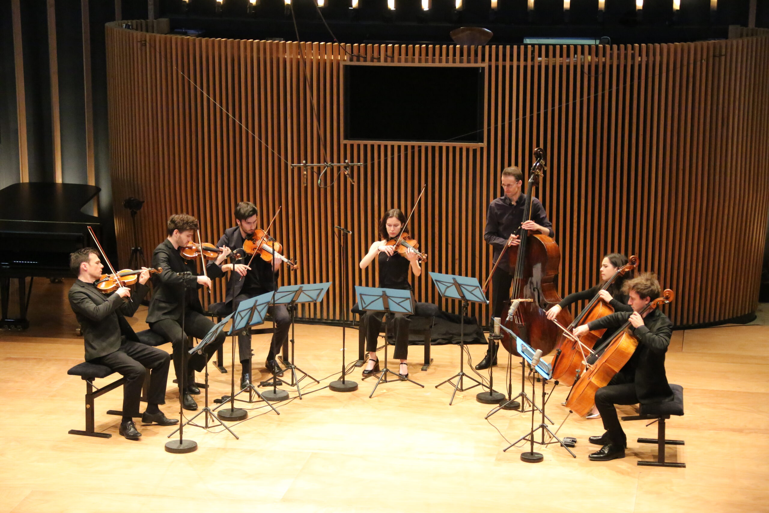 Le lendemain, Okada et Durliat se retrouvent donc par la force des choses pour les Valses n° 1 à 5, faisant ressortir la ductilités des Valses 2 et 3 ; puis pour quatre Danses Hongroises de Brahms, dont la n° 1 particulièrement soignée et sans doute encore plus la n°15 offerte en bis. Auparavant, le Sextuor de Richard Strauss permet de profiter des cordes, dans une version plus longue que celle retouchée pour l'Introduction de l'opéra Capriccio. Et cette fois, deux femmes sont présentes, Anna Sypniewski à l'alto et Stéphanie Huang à la contrebasse, en renfort du quatuor de la veille, composé d'Omer Bouchez (du Quatuor Hermès) et Vassily Chmykov aux violons, de Paul Zientara à l'alto et de Maxime Quennesson au violoncelle, tous renforcés en dernière partie par la présence de Yann Dubost à la contrebasse, pour la version en septuor des Métamorphoses du même Strauss. Si l'interprétation de la première pièce passe quelque peu à côté des styles viennois ou munichois prégnants à la partition du sextuor, la lumière des cordes françaises apporte une grande finesse aux Métamorphoses, plus portée vers la sagesse que vers la mort, grâce à la belle et prometteuse jeunesse de tous les interprètes sur scène.