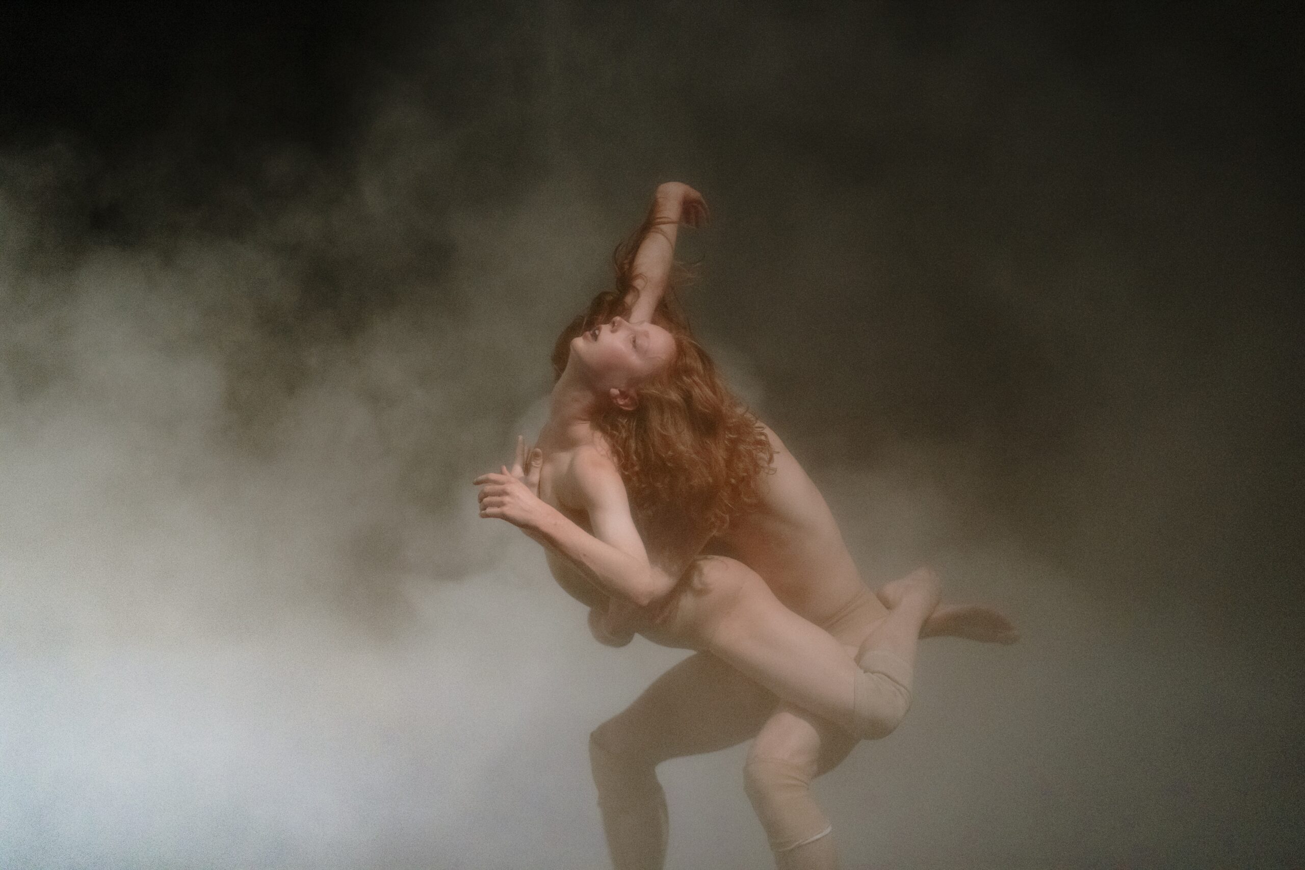 Puis en un troisième temps, arrive notre premier coup de cœur de la soirée, Oiwa (2022), dix-sept minutes de danse pure, pour un trio imaginé par le chorégraphe Franck Chartier de la compagnie Peeping Tom. Des fumigènes, puis trois danseurs en couleur chair miment les élans du cœur, du désir, du réconfort ou du rejet. C'est juste sublime.