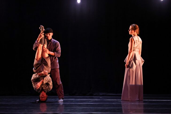 fiBraM c'est, selon la compagnie Chriki'Z et ses chorégraphes Jeanne Azoulay et Amine Boussa, le fil très fin qui sépare réel et imaginaire, chute et équilibre. Lien fragile qui peut exister entre des éléments qui, au premier abord, ne peuvent être liés. Comme le oud d'abord classique puis électro installé d'un côté ou de l'autre du voile qui sépare la scène en deux espaces, et les danseurs qui évoluent au premier plan, pris de spasmes, de soubresauts, puis accordés dans un duo en symétrie parfaite. Jamais où on l'attend, la danse est tour à tour acrobatique, saccadée ou fluide, lente ou au contraire frénétique. De même, la musique est tantôt douce et mélodieuse, tantôt rythmée voire dissonante.