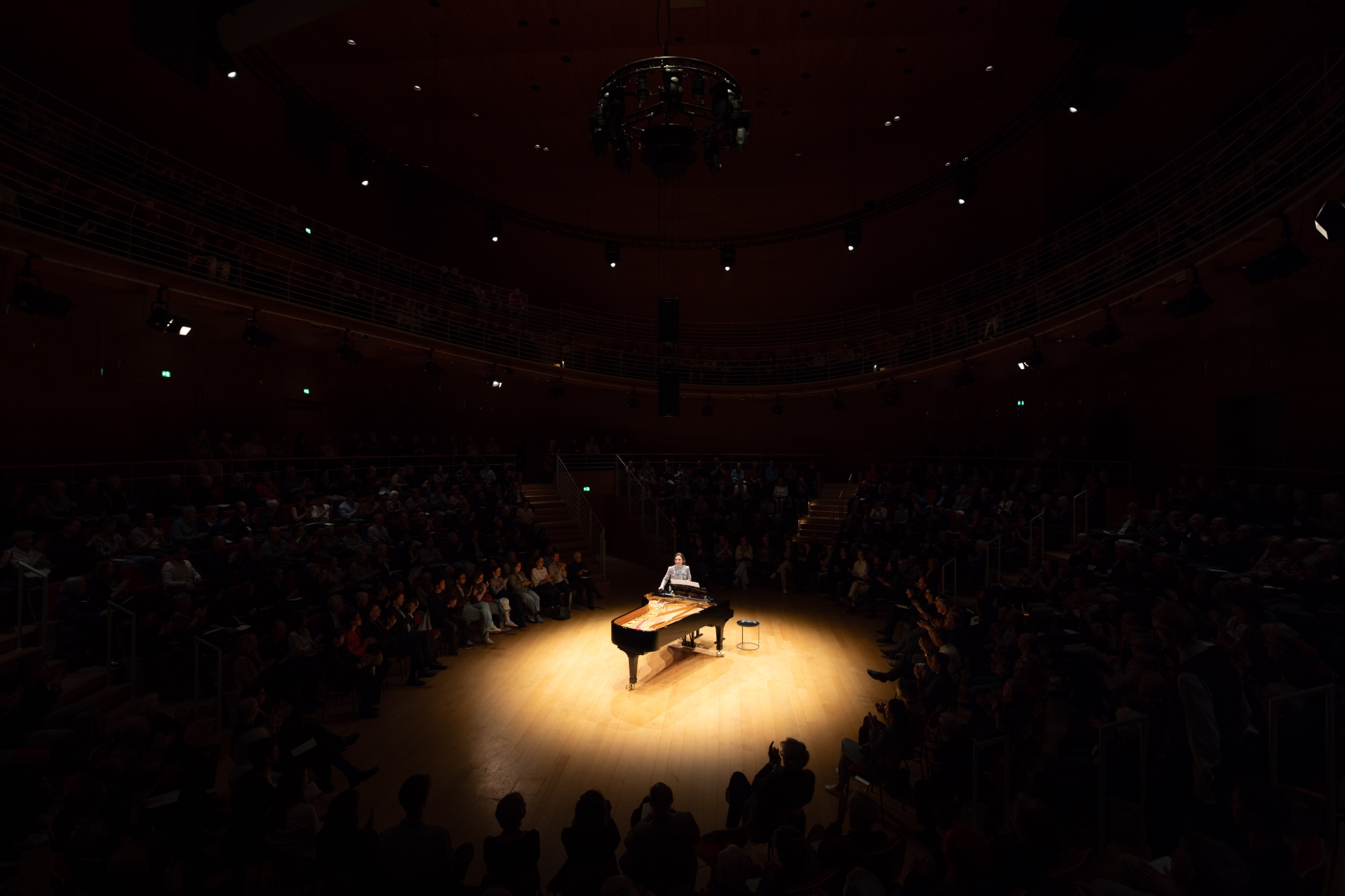 Un entracte qui permet, dans l'orbe boisée de la Pierre Boulez Saal, de faire pivoter le piano à 180°. Judicieuse idée qui permet à l'auditeur, sans bouger de son fauteuil bicolore, de profiter à la fois de la vision des mains et du visage de l'artiste, privilège d'une salle conçue en 2017 autour de la doxa exprimée par le compositeur français à l'entrée du bâtiment : « Il faut essentiellement considérer les concerts comme un moyen de communication, comme un contact animé entre des participants actifs, qu'ils soient auditeurs ou créateurs. » Ce que l'on avait imaginé au fil d'une première partie de dos se confirme au cours d'une seconde partie de face : le visage serein et rêveur au calme olympien d'une artiste qui, en maints endroits contemplatifs ou suspendus, se lève vers le lointain ou les hauteurs (le très contemplatif n°13), comme pour écouter la traversée du son, et constater dans la foulée l'effet qu'il produit dans une salle qui a tout d'un navire avec sa coursive et son double bastingage de spectateurs surplombant ses six gradins. Au sortir d'une soirée qui aura semblé passer comme un rêve aussi pour la pianiste, l'on sera tenté d'affirmer de Yulianna Avdeeva ce qu'on disait de Dmitri Chostakovitch : « Ses doigts jouaient comme par miracle, ils réussissaient tout. »