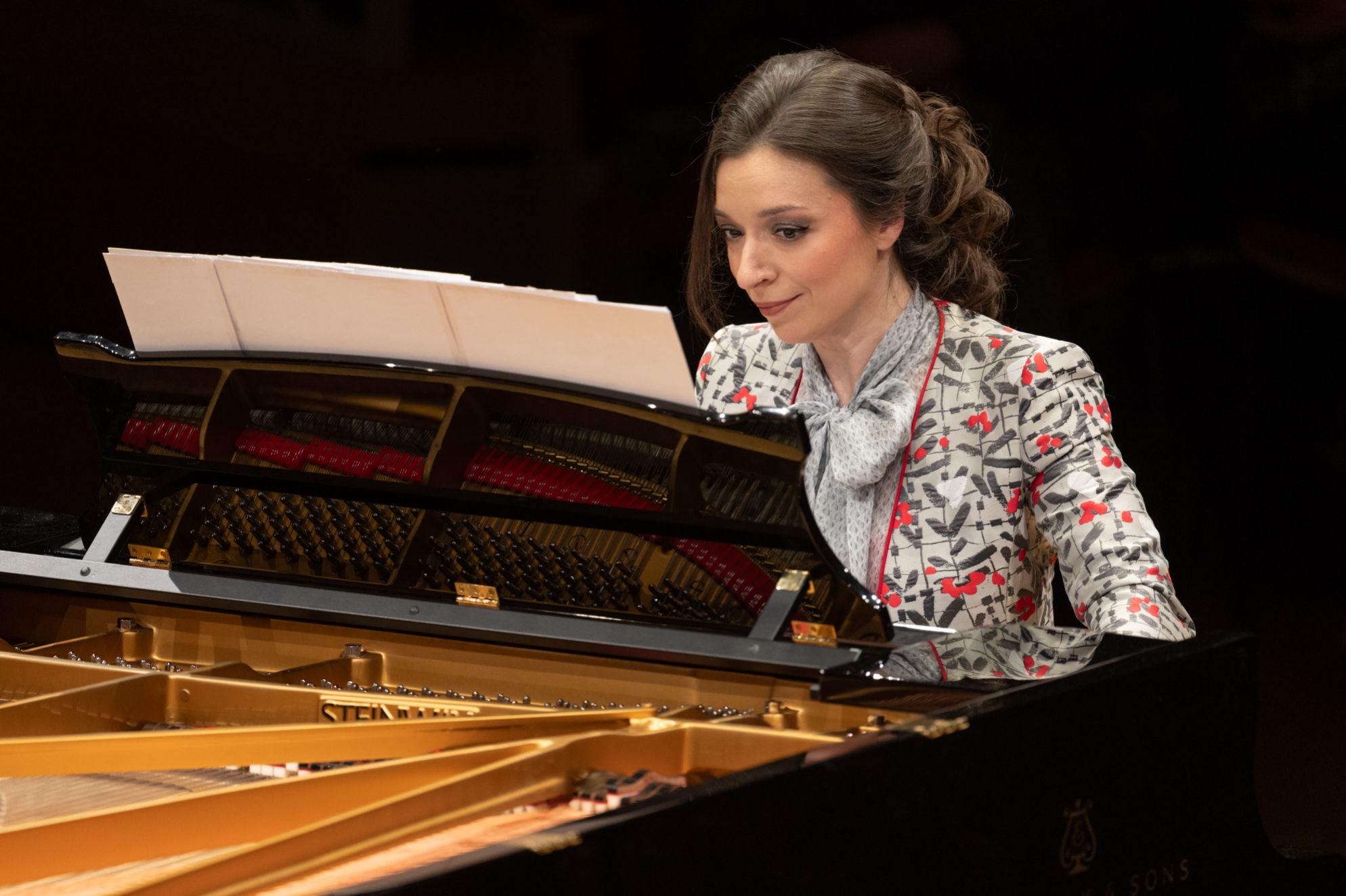 Dès l'audition d'un premier numéro qui aurait sa place dans les Scènes d'enfants de Schumann ou Les Saisons de Tchaïkovski, il est clair que l'on est aux antipodes autant des 15 symphonies du compositeur, que des marches et des hymnes intimés par le régime. Une impression dont on ne se départira à aucun moment d'une soirée aux allures d'immersion intime. L'atmosphère générale, rarement sévère, puissamment lumineuse (le miroitement introductif du n°5), balance entre comptines, folklore et hommages : certain Ballet des poussins dans leurs coques hante le n° 8, le n° 11… certaine Cabane sur des pattes de poule le n°3… Sur le cristal d'un Steinway merveilleusement sonnant, l'eau pure du toucher délicat de Yulianna Avdeeva, assez proche de celui de Tatiana Nicolaïeva, entraîne l'auditeur dans les arcanes d'une écriture confondante de sérénité : l'apollinien n°4, l'aquatique n°7, le charmeur n°22 et sa nostalgie des bonheurs évanouis… Lorsque le discours se fait plus autoritaire (le n°6) ou lorsque les choses se corsent franchement (la vélocité du n°9, le motorisme du n°15, le feu d'artifice final), l'œuvre, du plus bref (les 1'30 du n°2) au plus long (les 13' du n°16), ne prend jamais la virtuosité de la pianiste en défaut : les deux mains restent lisibles et affranchies l'une de l'autre. La soirée captive sur la durée, les applaudissements ne venant briser qu'une unique fois sur le n°15 (culte de la virtuosité oblige…) un cérémonial de 2H45 avec entracte.