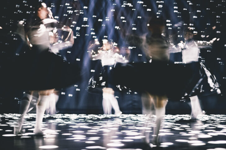 Voir Folkå du chorégraphe espagnol Marcos Morau est une preuve absolue du talent évident de ces jeunes gens. Cette pièce pour 14 danseuses et danseurs sera familière à ceux qui ont vu son ballet Sonoma, tant il en reprend l'esprit et les musiques, reconfigurées pour cette pièce qui projette une étrangeté étonnante. Car on ne sait vraiment qui sont ces apparitions, baignées dans un savant travail de lumières. Tout commence dans une belle pénombre avec des sons de cloches de vaches. Le rideau se lève sur un groupe compact de danseurs, tel un troupeau dont on ne voit que des visages masqués, comme un bovidé. Les têtes seules, vont de droite à gauche, de haut en bas, comme pour chercher leur route. Et c'est très beau. On les croit tous en noir, mais lorsque la lumière se fait, on découvre des hommes et des femmes en chemise blanches et dentelles noires avec des bretelles à l'autrichienne, et longues jupes noires traditionnelles.