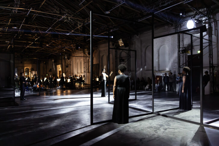 Dans des décors de la plasticienne Alicja Kwade, l'Opéra de Bavière investit une halle modulable pour un grand moment d'émotion lyrique.