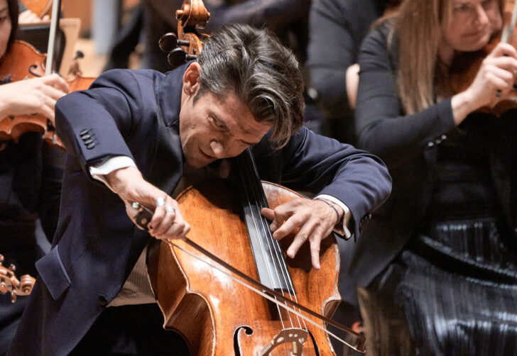 Le Concerto pour violoncelle et orchestre n° 2 fut composé en 1966 alors que Chostakovitch vivait une période difficile de sa vie faisant suite à son adhésion, sous pression, au Parti Communiste, période pendant laquelle naquirent de nombreux regrets et des idées suicidaires… Plus méditatif et introverti que le Concerto n° 1 qui eut longtemps les faveurs du public, il fut remis au goût du jour par Rostropovitch qui appréciait particulièrement sa noirceur, son ironie, son introspection douloureuse et son côté parodique. Le Largo initial s'ouvre sur une phrase grave, méditative et peuplée d'ombres énoncée par le soliste. L'orchestre intervient bientôt, d'abord discrètement pour engager un dialogue à mi-voix. On apprécie une fois encore la belle sonorité et le legato de Gautier Capuçon développés sur un tapis de cordes avec un jeu souple et fluide dans un climat pesant, avant que le phrasé ne s'anime sous la pression d'une petite harmonie stridente et des notes acides du xylophone pour se transformer progressivement en un véritable antagonisme marqué par une joute opposant violoncelle et percussions. L'Allegretto voit Gautier Capuçon libérer toute sa virtuosité, jusque-là contenue, dans une sorte de sarabande satanique, parodique, envoûtante et très rythmique, appuyée sur un dialogue serré avec les vents (cor, petite harmonie) et les percussions, menée avec brio et précision par Anna Rakitina, avant qu'une cadence très engagée ne replace le soliste sur le devant de la scène. La section finale amorcée par une belle mélodie recrutant soliste, flute, et basson, alterne ensuite passages lyriques et épisodes plus agités tandis que le xylophone accentue la pression rythmique, obsédante comme celle d'une horloge par son tic-tac lancinant (Chostakovitch était obsédé par les horloges qu'il écoutait la nuit pendant ses insomnies !) avant un retour au calme concluant sereinement cette belle interprétation du violoncelliste français.