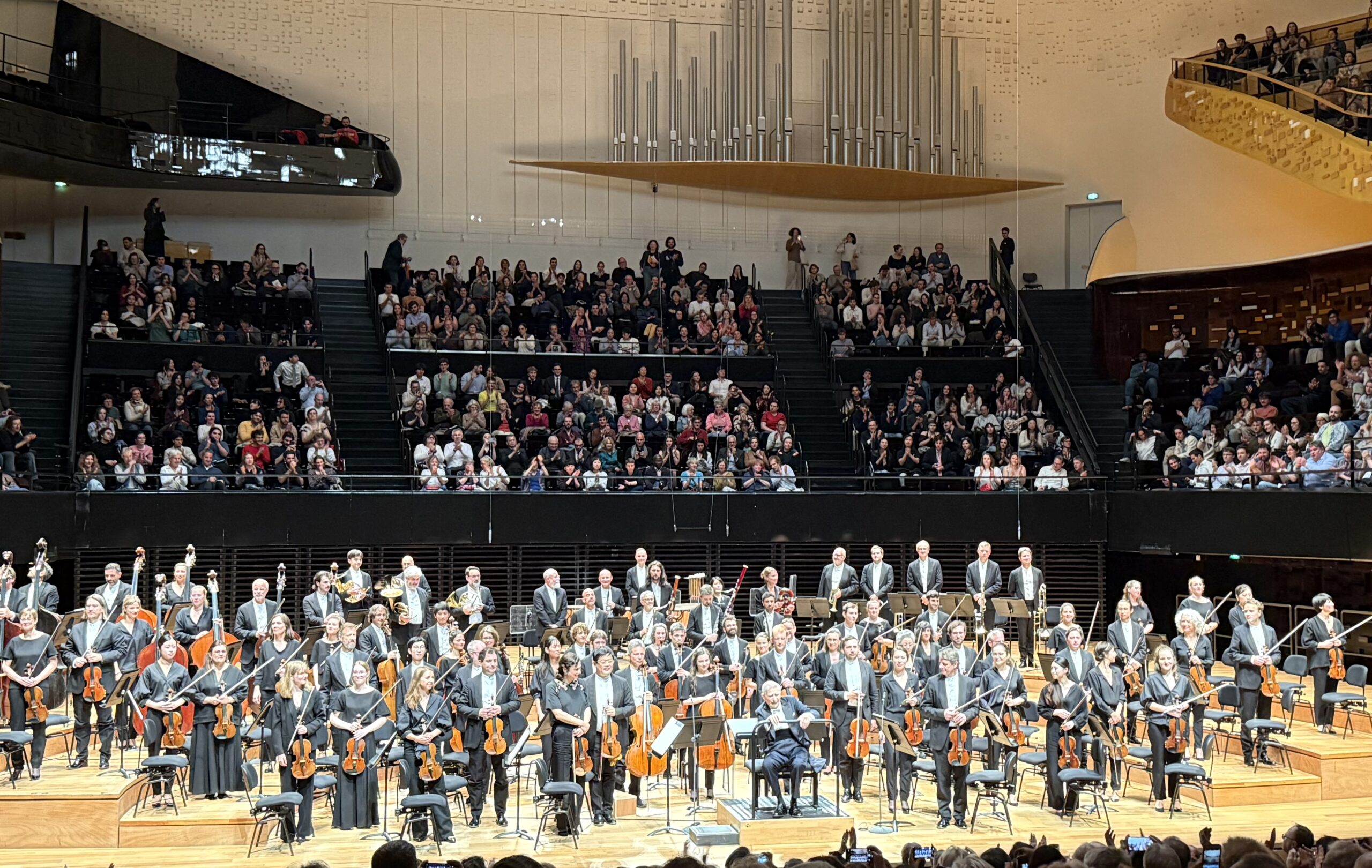 En seconde partie, le chef revient sur scène comme il est entré au début, en même temps que l'Orchestre de Paris, soutenu par Sarah Nemtanu tout sourire pour l'accompagner jusqu'au podium, où l'attend maintenant un micro prévu pour relancer le son amplifié dans des oreillettes bien visibles ; un objet technique maintenant nécessaire et apparu seulement cette saison. Au moins, cela rend Blomstedt plus précis et plus alerte que l'an passé, où pendant de grands moments dans la 8ème de Bruckner se créaient de vrais flous. Pour la Première de Brahms à présent, les cordes débutent avec force et précision, sans trop peser et toujours avec la forme de légèreté recherchée par le chef depuis plus d'un demi-siècle dans ses interprétations du compositeur allemand.
