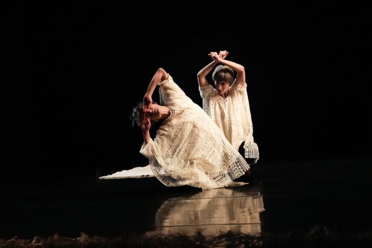 La scène s'apaise. Les manteaux sont enlevés et les danseuses s'habillent de dentelle. Le vent désormais les berce dans de langoureux mouvements au sol. Une des deux danseuses s'endort. Sa compagne l'enveloppe et attire le tapis à elle pour se nicher dans les herbes sèches déposées au sol. Le sommeil les entraine sous le bruit du vent : c'est un regard intime sur le monde de la consolation de deux femmes qui partagent le destin d'une vie d'errance dans un espace abandonné qui nous a été offert.
