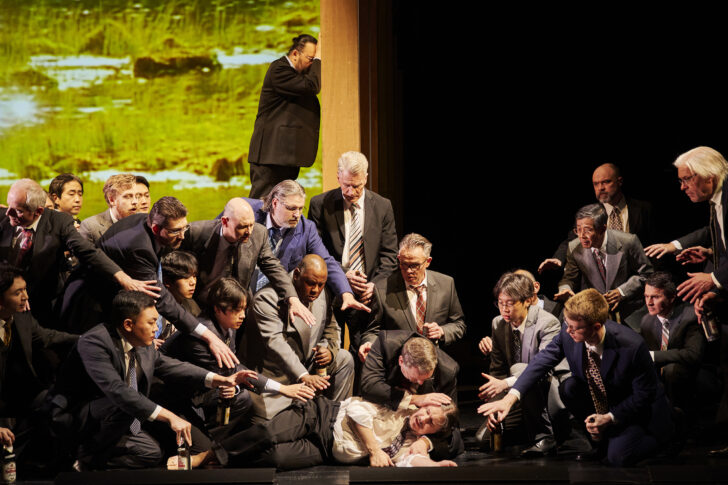 Dortmund. 26-V-2025. Richard Wagner (1813-1883) : Götterdämmerung (Le Crépuscule des dieux), troisième journée de L’Anneau du Nibelung. Mise en scène : Peter Konwitschny ; décors et costumes : Bert Neumann. Avec : Daniel Frank (Siegfried), Joachim Goltz (Gunther), Morgan Moody (Alberich), Samuel Youn (Hagen), Stéphanie Müther (Brünnhilde), Barbara Senator (Gutrune), Anna Lapkovskaja (Waltraute), Sooyeon Lee, Tanja Christine Kuhn, Ruth Katharina Peeck (Filles du Rhin), Rita Kapfhammer, Anna Lapkovskaja, Tanja Christine Kuhn (Nornes). Chœur de l’Opéra de Dortmund ; Dortmunder Philharmoniker ; direction : Gabriel Feltz