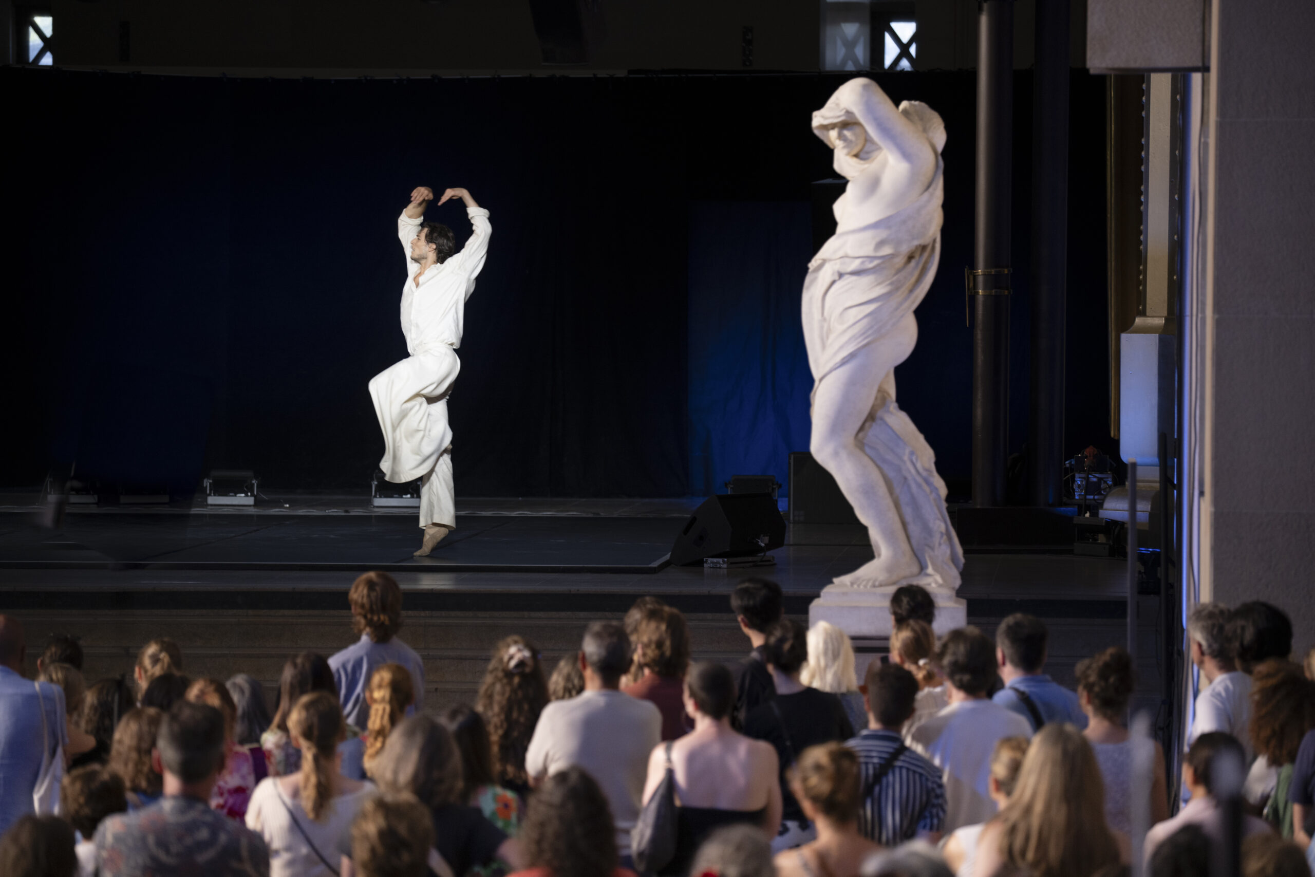 En compagnie de quatre danseurs, dont le danseur étoile Hugo Marchand, du violoncelliste Pierre Le Bourgeois et du choeur de hurleurs finlandais Mieskuoro Huutajat, Carolyn Carlson a investi la nef du musée d'Orsay pour un programme mêlant danse, improvisation, poésie et musique.