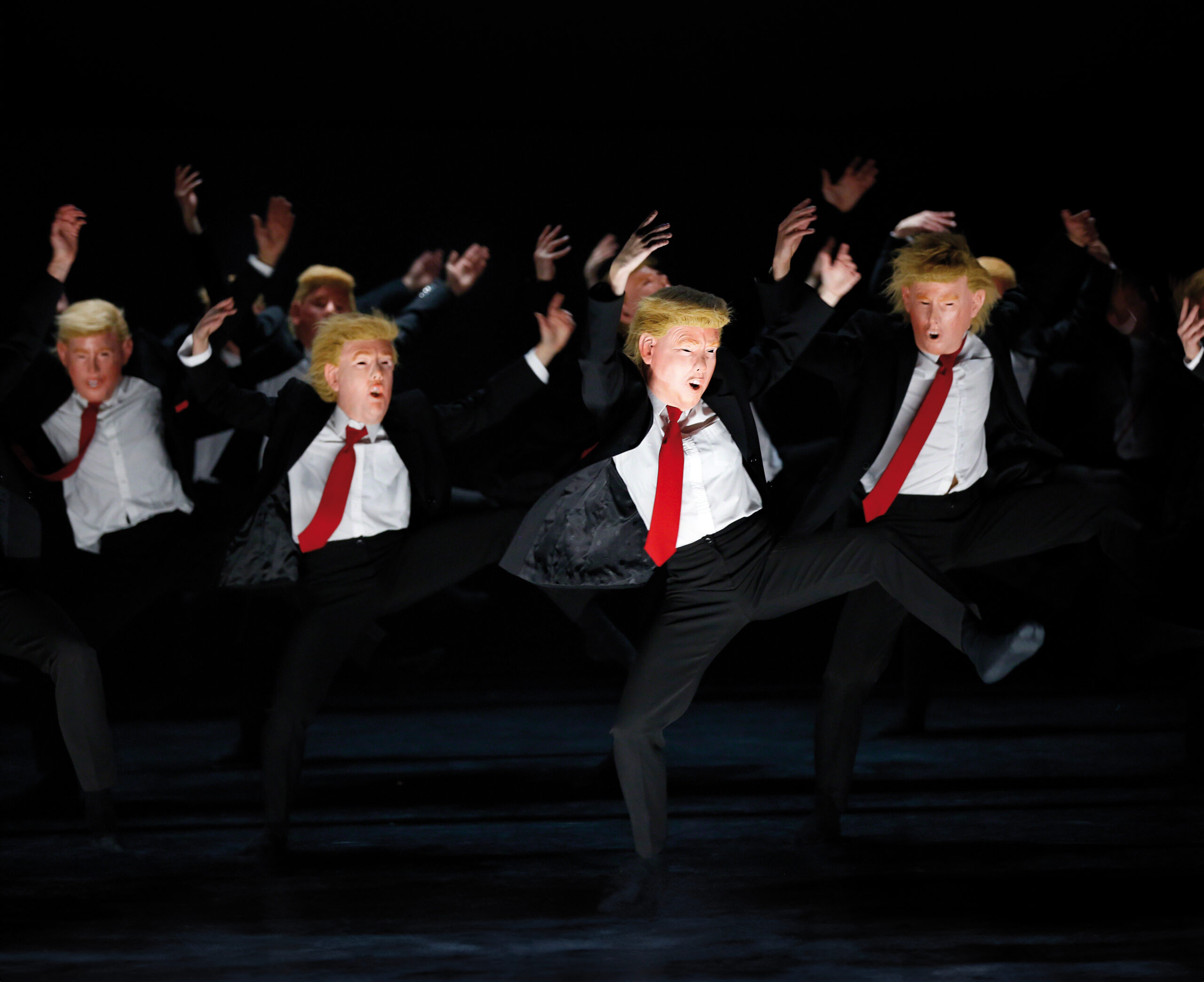 MH : Tout a commencé en Israël, au moment de son élection, puis aux Pays-Bas, où j'ai créé une pièce pour une compagnie jeune public. Ensuite, j'ai conçu America à Leipzig, avant de le reprendre à Avignon. J'avais besoin de me rassurer en remontant cette pièce. Je suis un peu fatigué de cette personnalité, car j'ai pris un virage différent dans ma carrière, avec Crocodile, un travail plus abstrait, moins théâtral, plus axé sur le corps.