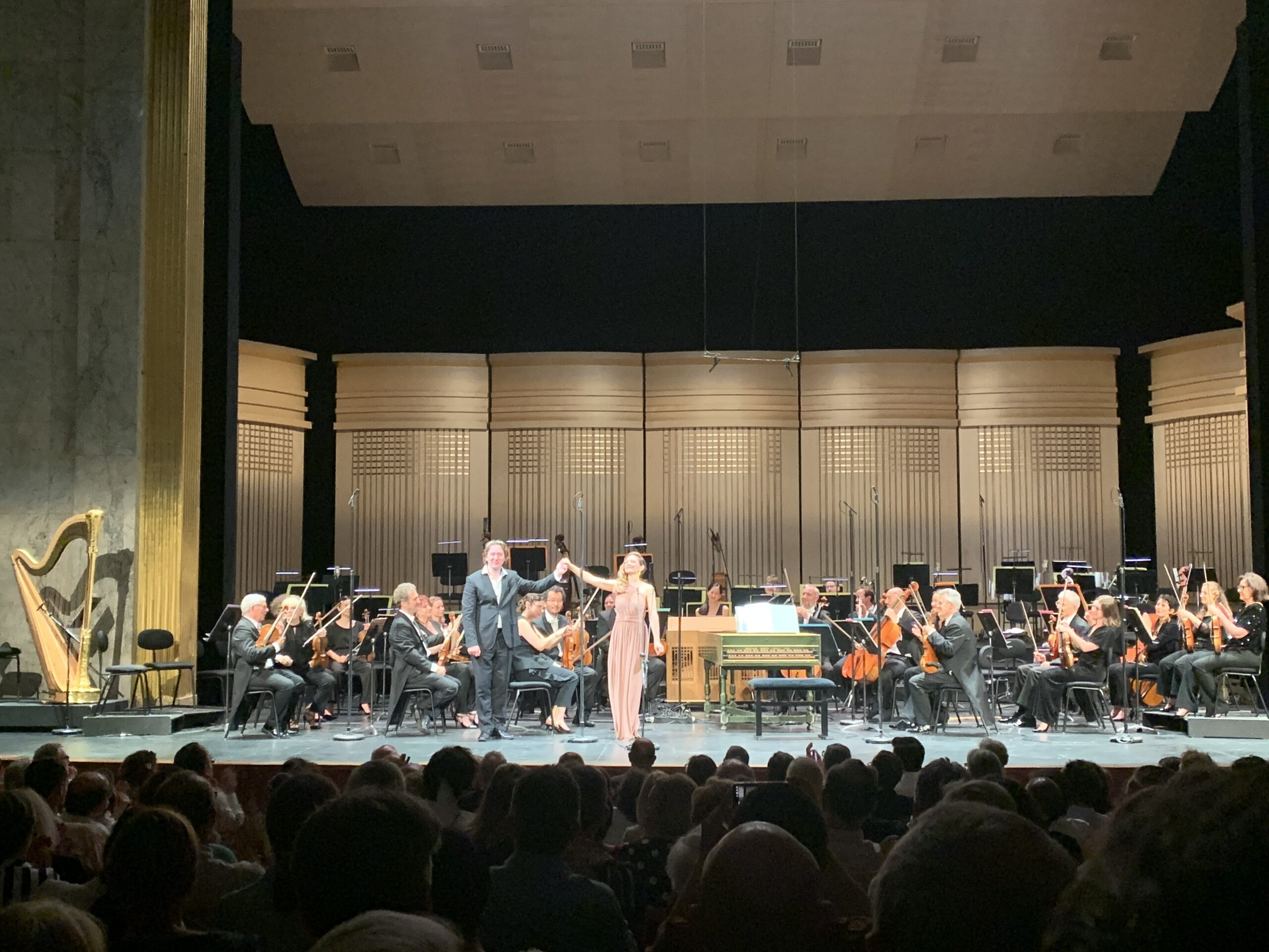 Contraste la seconde partie qui commence avec une œuvre lyrique, autrement plus lumineuse. Sabine Devieilhe, loin de la pure démonstration vocale, s'empare du motet Exsultate Jubilate et de ses vocalises avec une délicatesse, une musicalité extraordinaires. C'est un enchantement de l'entendre, de redécouvrir cette œuvre pyrotechnique habillée du doux fruité de son timbre, du velouté caressant de sa voix. Chaudement applaudie, elle offre en bis Amor de Richard Strauss, éblouissant l'auditoire de ses aériennes virevoltes vocales.