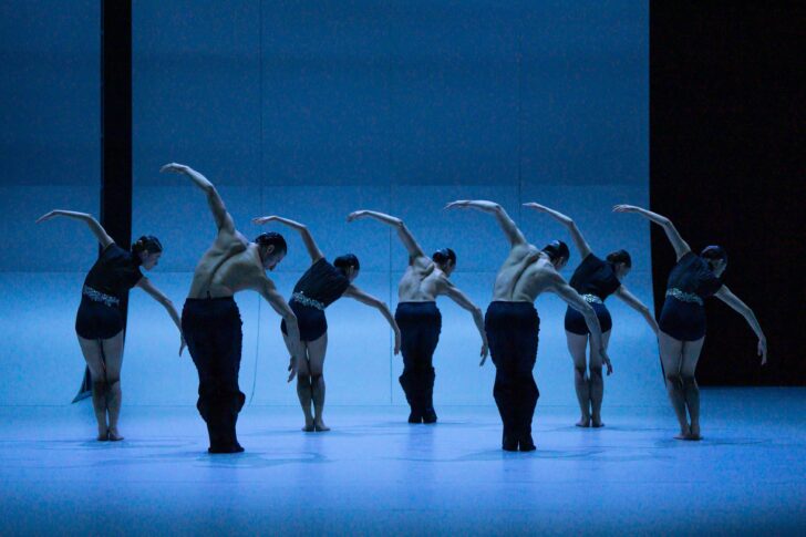 En 2 h 25 de représentation, le public n'a eu droit qu'à 1 h 10 de danse : on comprend bien les impératifs techniques de changement de décor, mais tant de pauses finissent par émousser l'intérêt, même si le public reste enthousiaste jusqu'à la dernière pièce. Le thème nocturne de la soirée, heureusement, lui donne une cohérence, même s'il faut la payer par des costumes presque uniformément noirs. Deux pièces d'ensemble d'une bonne vingtaine de minutes entourent deux pièces plus courtes, un trio puis un duo, toutes créées par le Ballet de Stuttgart entre 2021 et 2023.