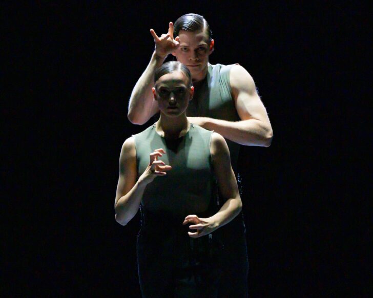 Le doyen des chorégraphes de la soirée est Marco Goecke, le futur directeur du Ballet de Bâle, qui a longtemps été une figure dominante de la danse à Stuttgart, en tant que chorégraphe en résidence depuis 2005 ; depuis que Tamas Detrich avait mis un terme à cette résidence à la fin de la saison 2017/2018, ses pièces avaient à peu près disparu du répertoire. Nachtmerrie, en néerlandais Cauchemar, est un peu une exception : ce duo d'une dizaine de minutes a été créé en juin 2021, à la sortie de la phase aiguë de la crise du Covid, par et pour les mêmes danseurs que ce soir. La pièce s'ouvre par un solo du danseur masculin, Henrik Erikson, qui parvient à donner une force de vie inhabituelle aux saccades qui font le style de Marco Goecke : robot doué de vie humaine, humain enserré dans des liens qui bloquent son mouvement ? Sa relation avec le personnage féminin dansé par Mackenzie Brown montre cette même limite hésitante entre intense rencontre de deux êtres et juxtaposition de deux machines mal accordées ; Brown, première soliste depuis 2023 seulement, ne nous a jamais pleinement convaincu, non pas faute de technique, mais faute de cette capacité de s'imposer en scène que son partenaire dispense sans compter. Elle quittera le ballet de Stuttgart à la fin de la saison pour n'y avoir plus qu'un contrat d'artiste invitée.