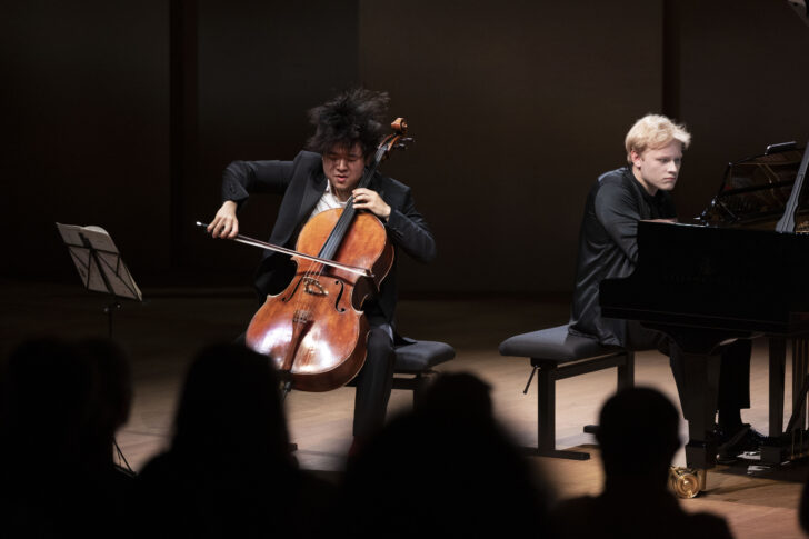 Le lendemain matin, c'est cette fois un récital plus classique de violoncelle et piano qui met en avant non seulement le pianiste Alexander Malofeev, mais aussi le violoncelliste Jaemin Han. Habitués à jouer ensemble (un album va bientôt sceller leur collaboration), les deux jeunes artistes débutent par un Chant du ménestrel de Glazounov pris lentement, et qui n'a d'autre intérêt que d'ouvrir à la célèbre Sonate de Franck enchaînée directement. Ici donnée dans la transcription validée par le compositeur, elle permet de découvrir la capacité du violoncelliste sud-coréen à transmettre les émotions. Ses amples mouvements ne sont pas surfaits par rapport à la véritable sensibilité présente dans la musique. La Sonate de Prokofiev manque peut être ensuite d'un peu de mordant, mais c'est une très belle idée de proposer dans cette salle créée pour Rostropovitch une œuvre écrite pour lui par un compositeur alors interdit par le régime soviétique. La transcription du lied Morgen en bis conclut le concert en annonçant déjà le programme du samedi : Kaufmann et Damrau dans Mahler et Strauss, entendus cinq jours plus tôt par le public parisien.