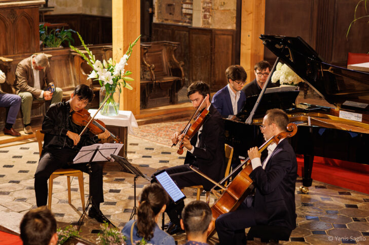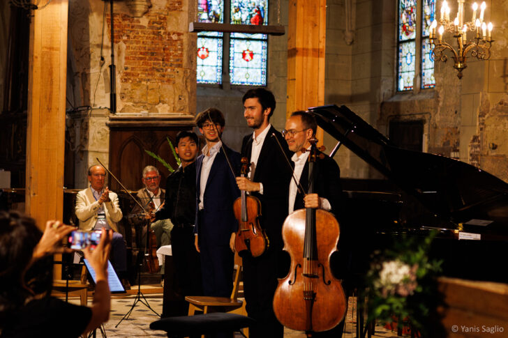 Le célèbre Quintette pour piano et cordes op. 44 de Robert Schumann conclut la soirée. Composé en 1842, monument du répertoire romantique, dédié à Clara, il fut créé en 1843 par les musiciens du Gewandhaus de Leipzig avec Clara Schumann au piano. Il comprend quatre mouvements : un Allegro brillante affirmant d'emblée une grande complicité entre les cordes conduites par Kerson Leong et le piano de Jean-Frédéric Neuburger. On y admire la rigueur de la mise en place, la clarté de la polyphonie, la fluidité du jeu du piano, l'énergie déployée et la remarquable ampleur sonore du violoncelle de Cyprien Lengagne et de l'alto de Paul Zientara ; une Marche funèbre (qui n'est pas sans rappeler les trios de Schubert) qui séduit par sa beauté mélodique ; un Scherzo très rythmique dont on apprécie la dynamique et le coté malicieux, précédant un Allegro final en forme de cavalcade échevelée pour conclure cette interprétation enthousiasmante. Un festival à suivre…