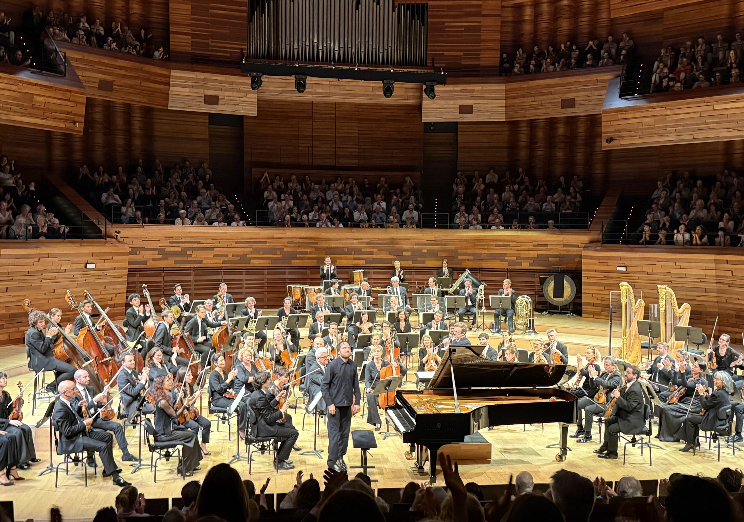 Un peu dans son monde encore parfois – il restera les yeux rivé sur son clavier pendant l'intégralité du concerto -, il gère avant tout sa partie et se laisse accompagner, même s'il écoute l'orchestre et les musiciens dans les échanges. La cadence donnée comme à son habitude dans la version « Ossia » du compositeur permet un grand moment de piano, de même qu'au centre de l'Intermezzo, où sans procurer une émotion qu'on aimerait encore plus intense, Trifonov présente toutefois maintenant une grande clarté et une grande maturité d'approche. Le Final aurait, lui aussi, pu être plus effusif, mais au moins évite tout le pathos entendu cent fois dans l'œuvre. Au contraire, tout en procurant souvent du souffle au Philharmonique de Radio France, Daniel Harding donne toujours une véritable finesse à l'ouvrage, au risque de mettre en défaut les cors dans un passage du premier mouvement demandé pianissimo, mais à l'avantage des vents et de cordes toujours claires. En bis, Trifonov revient à un extrait de La Belle au Bois Dormant de Tchaïkovski, en l'occurrence le Pas de deux conclusif de la suite transcrite pour piano par Pletnev, joué bien plus fin que lors du récent récital précité.
