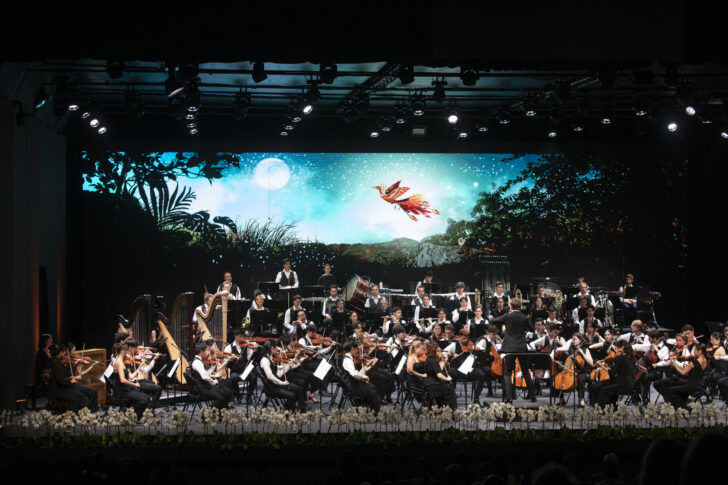 Après l'entracte, le plateau du Verbier Festival s'emplit d'une centaine de musiciens pour respecter l'orchestration voulue par Igor Stravinsky pour son ballet L'Oiseau de feu (version 1910). Œuvre magistrale et spectaculaire que Klaus Mäkelä traite comme une grande symphonie plutôt que d'en favoriser le rythme propre aux besoins d'un ballet et de la danse. S'ensuit une palette infinie de couleurs orchestrales peut-être belles et variées mais qui nuisent quand même à l'esprit de cette pièce. Notons cependant qu'on a eu l'idée pour le moins saugrenue, encore que se répandant de plus en plus dans les salles de concert, d'y ajouter la projection vidéo (Marc Philippin) de l'argument théâtral du ballet. Occupant tout le fond de la scène, des dessins caricaturaux aux couleurs vives font le décor de scènes animées par des personnages de papier découpé qu'on fait se déplacer par à-coups comme on le ferait de figurines de théâtre d'ombres. L'omniprésence de ces animations a tôt fait de capter l'attention pour qu'elle s'éloigne de celle qu'on pourrait apporter à la musique. Ecouter la musique est un choix impossible tant l'agressivité des images est prégnante. On peut dès lors bien imaginer que ce parasitage de l'écoute pour le spectateur doit être encore plus intense et dérangeant pour Klaus Mäkelä subissant de face ce bombardement de couleurs. Tout en le félicitant d'avoir réussi à rester maître de son orchestre et à diriger avec autorité et conscience cette partition malgré cette sollicitation visuelle, on ne peut que regretter qu'il n'ait pu porter cette musique avec la verve orchestrale qu'on lui connait.