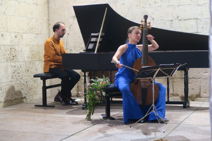 C'est décidément l'année de la viole de gambe à La Roque d'Anthéron ! Le lendemain, c'est au tour de d'être invitée dans le cloître de Silvacane pour un programme qui reprend en partie celui de son dernier disque « Mystères », accompagnée ici par au clavecin. Dès la première pièce, une Sonatina anonyme parfois attribuée à Biber, on sent une belle complicité entre les deux interprètes, et une grande liberté dans l'élocution de la phrase musicale. La sonorité de la basse de viole historique de 1653 que joue est d'une rondeur exceptionnelle. La violiste présente elle-même la suite du programme, dédiée à la transcription. La Sonate BWV965 est transcrite de la main de J.S. Bach pour clavier à partir d'une sonate pour deux violons de Reincken. Ici, la viole rejoint le clavecin pour l'Adagio introductif qui a des accents de stylus fantasticus, et pour la Gigue finale. La partie centrale permet d'apprécier au clavecin solo le toucher très expressif d'. La pièce suivante est la grande Passacaille de l'Ange gardien extraite du cycle des Sonates du Rosaire de Biber, véritable morceau de bravoure pour violon solo, encore plus impressionnant ici dans l'arrangement qu'en fait pour la basse de viole. Basée sur le tétracorde descendant, qui s'impose en une basse obstinée lancinante d'un bout à l'autre de l'oeuvre, elle développe des variations d'une incroyable virtuosité, jusqu'à l'extrême aigu de l'instrument. Mais jamais cette virtuosité ne prend le pas sur l'expressivité, et l'émotion transmise par l'archet de Salomé Gasselin est immense. La Sonate BWV 1028 pour basse de viole et clavecin obligé qui conclut ce programme nous ramène à un répertoire moins inattendu. On se souvient qu' avait enregistré ces sonates pour viole avec Lucile Boulanger en 2012. Il s'agit d'un véritable dialogue entre les deux instruments, le clavecin ayant ici un rôle concertant et ne se contentant pas d'un simple accompagnement. Dans les mouvements lents, le chant de la viole se fait d'une extrême lenteur et nous offre une interprétation profondément inspirée. Le public enthousiaste demande deux bis, qui se terminent par La Mariée de Marin Marais.