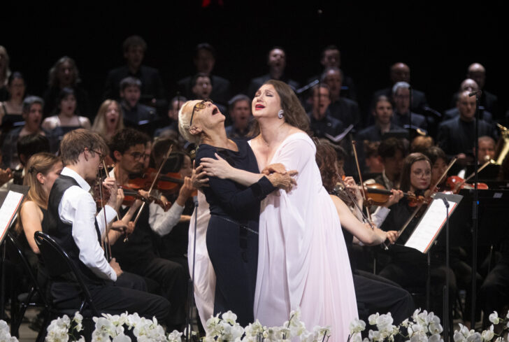 Devant ce déferlement musical, la réponse du plateau vocal s'avère à la hauteur. La soprano Yulia Matochkina (Santuzza), remplaçant Lise Davidsen enceinte, élève sans problème sa voix au-dessus de l'orchestre. Si son instrument vocal est beau, comme nous nous en étions émus lors de sa prestation dans le Requiem de Verdi à Verbier en 2023, il manque peut-être du feu et du style nécessaires à ce personnage vériste. A ses côtés, on retrouve l'incroyable Elena Zilio (Mamma Lucia) qui habite l'impuissance du personnage d'une vocalité irréprochable et d'une sensibilité à fleur de peau. La technique du baryton Ludovic Tézier (Alfio) lui permet d'aborder sans problème l'agilité de l'ingrate entrée vocale de son personnage. Reste que nous avons regretté qu'une large partie de la noirceur et du bronze de sa voix n'était pas au rendez-vous. Charmante la voix de la jeune soprano Ava Dodd (Lola). Habitué du Verbier Festival, après ses apparitions dans Un Ballo in Maschera de Verdi en 2022 et le Requiem en 2023, le ténor Freddie De Tommaso (Turridu) impressionne par sa puissance, ses aigus. Si ses premières scènes apparaissent dans la récitation manquant quelque peu de théâtralité, son Viva il vino spumeggiante est empreint d'une opportune légèreté. Mais c'est dans la scène finale qu'il offre le meilleur de sa prestation avec un déchirant duo avec Elena Zilio (Mamma Lucia).