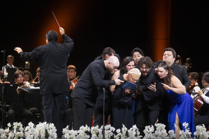 Ne ménageons cependant pas notre plaisir à l'imposante musique de Mascagni que la baguette d'Andrea Battistoni exalte avec une fougue et une musicalité passionnées. Il emmène un Verbier Festival Orchestra aux anges dans d'immenses débordements lyriques noyant l'espace de musique. Vivant la musique intensément, le chef italien met tout son corps au service de l'expressivité. Lançant sa main, les bras tantôt explosant au-dessus de l'orchestre ou moulinant sur sa poitrine, il ne se ménage pas. Pas étonnant dès lors qu'il a été choisi pour succéder au démonstratif Gianandrea Noseda à la direction musicale du Teatro Regio de Turin.