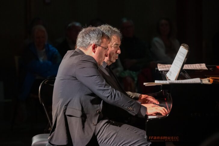 Après Mozart et Debussy sous les quatre mains de et Michel Béroff, les visions de l'Amen à deux pianos d' clôturent en beauté le festival, comme il est de tradition au Pays de la Meije. L'interprétation qu'en livre les deux pianistes qui ont beaucoup joué l'œuvre en concert et qui viennent de l'enregistrer, comble toutes nos attentes : profondeur du jeu, vitalité des couleurs, énergie et qualité du son, puissance et émotion : les sept visions musicales de Messiaen, vaste architecture digne de cathédrales, résonnent entre les murs de l'église de La Grave dans leur ampleur et leur plénitude quasi orchestrale.