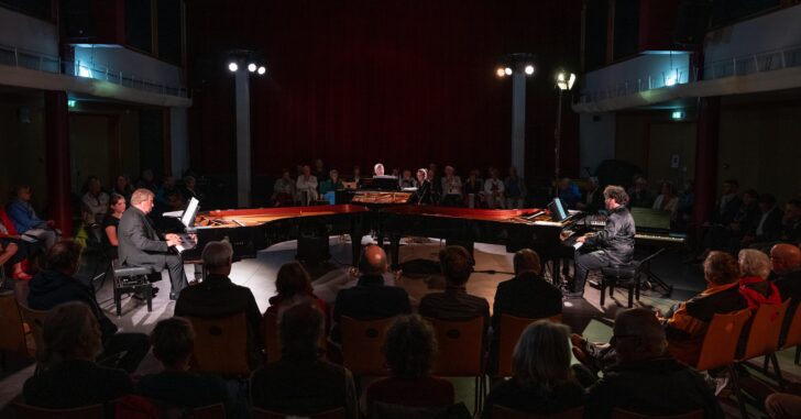 Dans la Salle du Dôme du Monêtier-Les-Bains, trois pianos sont disposés en étoile, invitant le public à s'asseoir en périphérie. Jean-François Heisser s'est entouré de son fils Charles et de son élève – et fils spirituel – lors de cette soirée festive mise en espace où des œuvres rares pour trois pianos (dont une création) sont à l'affiche à côté de transcription. Ainsi débute-t-on dans l'emphase sonore avec l'Ouverture des Maîtres Chanteurs de Nuremberg transcrite par Max Reger et arrangée pour l'occasion par les trois interprètes. Le projet est ambitieux mais non moins exaltant, conduit de mains de maître, avec élan et ferveur, par nos trois artistes qui confèrent à cette page mythique la puissance orchestrale requise.