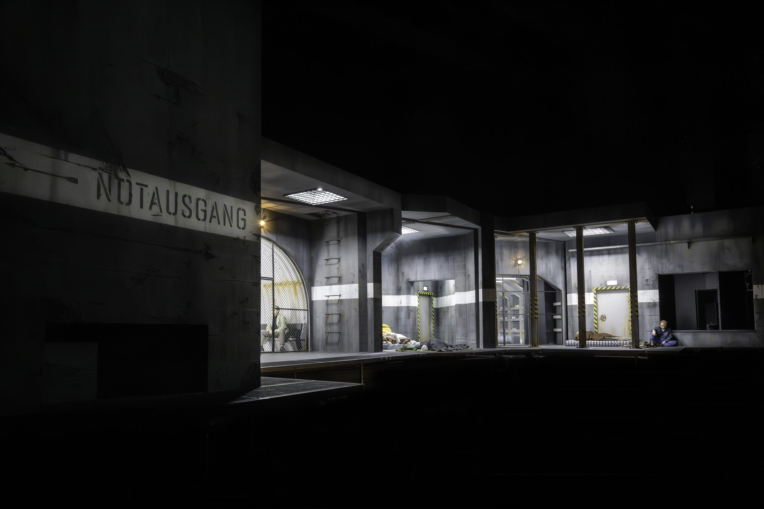 En choisissant de placer tous les personnages au fond d'un bunker, Tcherniakov crée une promiscuité qui les contraint à d'incessantes frictions. Trois compartiments, celui tout à gauche plutôt réservé à César, celui de droite dominé par Tolomeo, et celui du centre pour les rencontres entre ces univers. L'efficacité dramatique est certaine, et Tcherniakov sait raconter une histoire ; ce qui nous manque un peu, c'est le sens qu'il veut lui donner, une interprétation de cette histoire de pouvoir et de sentiments. Ceux qui ne connaissent pas cet opéra trouveront là une bonne exposition de ce qui en fait la force, ceux qui le connaissent déjà n'y découvriront rien de très neuf.