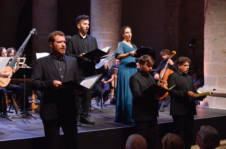 Le premier concert de cette 46ème édition propose un programme Scarlatti qui débute avec des extraits des Vêpres de Sainte Cécile dont le Magnificat. Si la première strophe en grégorien crée une ambiance monastique, la puissance des voix du Coro e Orchestra Ghislieri affirme le texte Fecit potentiam jusqu'au Gloria qui éclate dans l'abbaye. Le Lauda Jerusalem n'est pas assez joyeux et son interprétation ne se démarque pas assez. Suit la Messa di Santa Cecilia dont le Gloria est affirmatif, énergique. La voix très timbrée de la basse Alessandro Ravasio s'impose comme le duo très expressif des soprani Maria Grazia Schiavo et Carlotta Colombo. L'Agnus Dei, chanté par le chœur seul, est tout en nuances. La direction de est très claire et fait passer ses intentions à ses troupes. La découverte arrive ! Le Te Deum d'Alessandro Scarlatti est une première mondiale, offerte aux festivaliers d'Ambronay ! Le grégorien est là, en introduction, puis le chœur donne le rythme indispensable à tout Te Deum. Chaque phrase est affirmée à l'image des attaques puissantes d'Alessandro Ravasio. Quelle énergie de tous ! Un concert bien apprécié par le public qui déguste ce premier programme du festival.