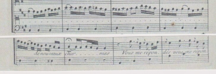 Ayant balayé l'éventualité du poste d'un compositeur de cour après la création du Devin du village à Fontainebleau devant le roi Louis XV, le philosophe nous a laissé tout de même ses Lettres sur la musique française (1753) où il disserte sur la primauté de la mélodie. Pour son opéra Daphnis et Chloé de 1774, Rousseau évoque les vendanges où les bergers et les bergères ramènent leurs corbeilles pleines de raisins pour les offrir au Dieu Pan et aux Nymphes. La musique de l'ouverture est d'une simplicité navrante, tant par le côté répétitif de la séquence initiale que par la dotation instrumentale :