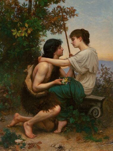 Mais parfois, la chanson parle d'un amour entre bergère et berger, d'une idylle qui remonte à l'antiquité grecque, reprise ensuite par Virgile dans ses Bucolica. Longos, un auteur grec du IIe siècle, a livré à la postériorité un roman pastoral sur la bergère Chloé et le chevrier Daphnis qui gardent leurs troupeaux côte à côte. Voyant Daphnis nu se laver dans la rivière, Chloé subit une secousse érotique et elle tombe malade sans savoir pourquoi. Ayant refusé les avances répugnantes d'un bouvier, elle embrasse le beau Daphnis qui, sous l'emprise de l'amour, ne tardera pas à découvrir les appâts de Chloé à moitié dévêtue. Mais leur amour reste innocent, ils sont jeunes et inexpérimentés, tous les deux sont d'ailleurs des enfants trouvés et recueillis par des parents adoptifs.