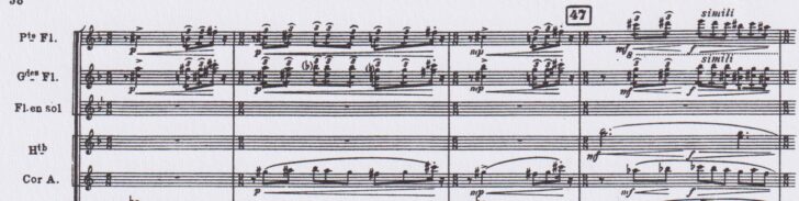 L'incipit aux violons, suivi ensuite de la flûte et du hautbois