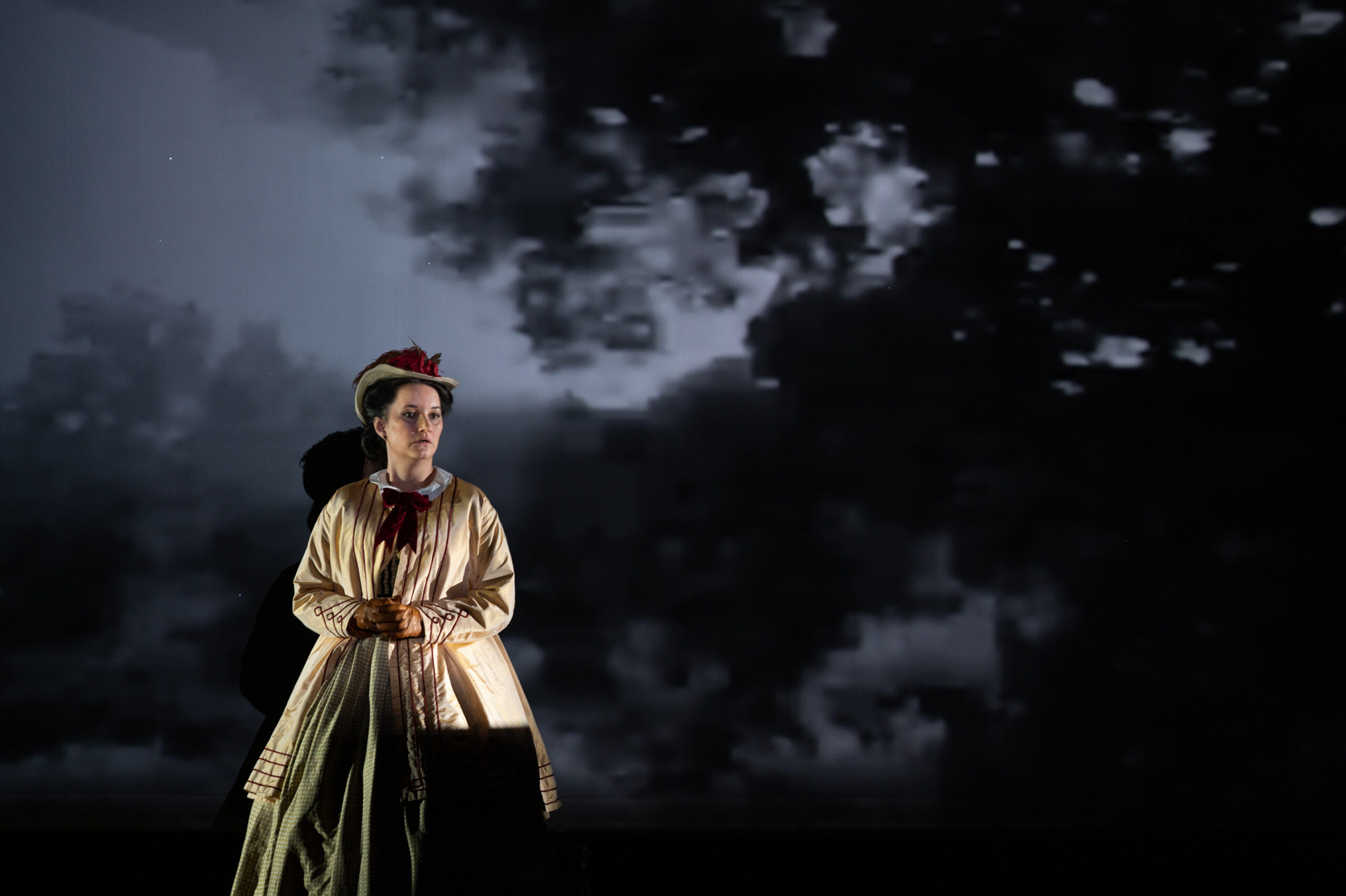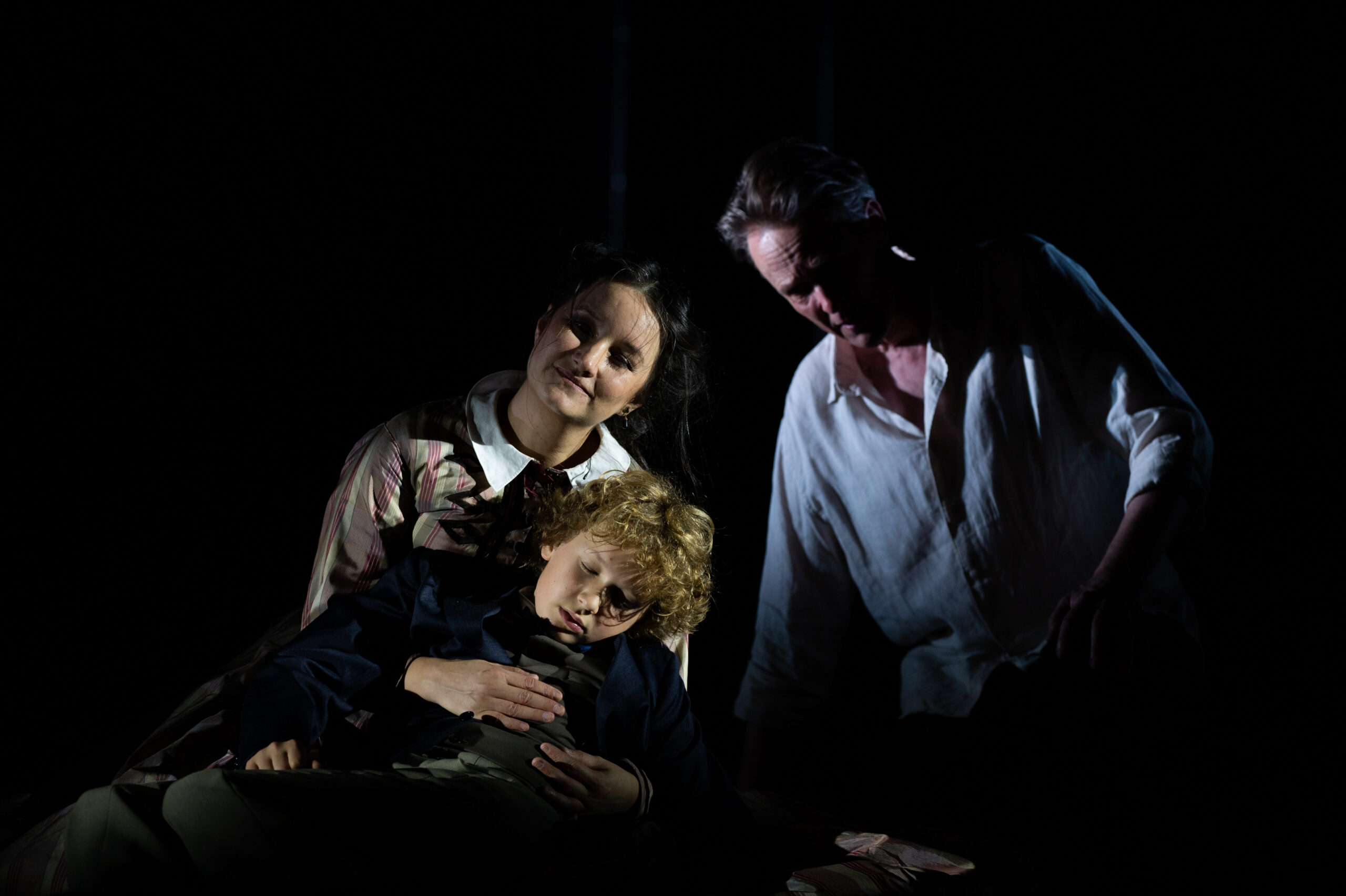La direction du Teatro Costanzi a donc très bien fait de la proposer à nouveau aujourd'hui, après près de trente ans, avec cette nouvelle production originale confiée à la baguette du jeune chef Ben Glassberg, actuel directeur de l'Orchestre de l'Opéra Normandie Rouen, et aux mains expertes de Deborah Warner. La metteuse en scène britannique avait signé une première mise en scène de l'œuvre de Britten en 1997 au Barbican Theatre de Londres, avec déjà le ténor Ian Bostridge dans le rôle de Peter Quint, sous la direction musicale de Colin Davis, et cinq ans plus tard, elle l'avait reprise à Covent Garden. Par rapport au spectacle de l'époque, Deborah Warner reconnaît l'évolution, mais avoue être toujours restée habitée par la partition de Britten. Et en effet, ce qui frappe dans cette nouvelle mise en scène, c'est la parfaite adéquation entre la partition et la dramaturgie, qui anime la scène du début à la fin, avec une touche de fraîcheur et d'innocence cristalline, qui peu à peu, inexorablement, se transforme en une noirceur totale, perverse, malveillante, cruelle. Le décor de Justin Nardella est minimaliste, avec quelques meubles noyés dans un noir épais et glaçant faisant ressortir les beaux costumes d'époque des personnages (Luca Costigliolo), plongeant la scène dans une atmosphère oppressante.