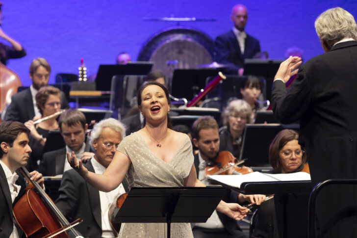 Avec son allure de conte pour enfant, le Bedachtig. Nicht eilen initial, dont l'équilibre est peut-être le plus délicat à trouver, augure du meilleur : science du rubato, maîtrise des embardées, beauté suffocante du son (l'entrée de la flûte !)… Le second mouvement illustre de visu le parcours imposé par le compositeur au premier violon entre deux instruments : le sien et un second, accordé un ton plus haut (scordatura) attendant sagement son tour, posé sur une chaise à côté de lui. Michael Schønwandt fait bien du grand Ruhevoll ce moment d'immobilisme étale propre à arrêter le temps (le hautbois !). La soprano Christina Landshamer, entrée avant les premières mesures de ce sommet mahlérien, y puise longuement l'esprit à venir du Wir geniessen die himmlischen Freuden conclusif, lumineuse alternance de virtuosité articulatoire et de geysers stratosphériques, conclue dans les tréfonds de l'orchestre par la note grave répétée de la harpe. La soprano allemande, très à l'aise, parfaitement accompagnée par le tempo allant de Schønwandt, donne une séduisante idée de la vie céleste rêvée par la plus immatérielle des symphonies de Mahler.