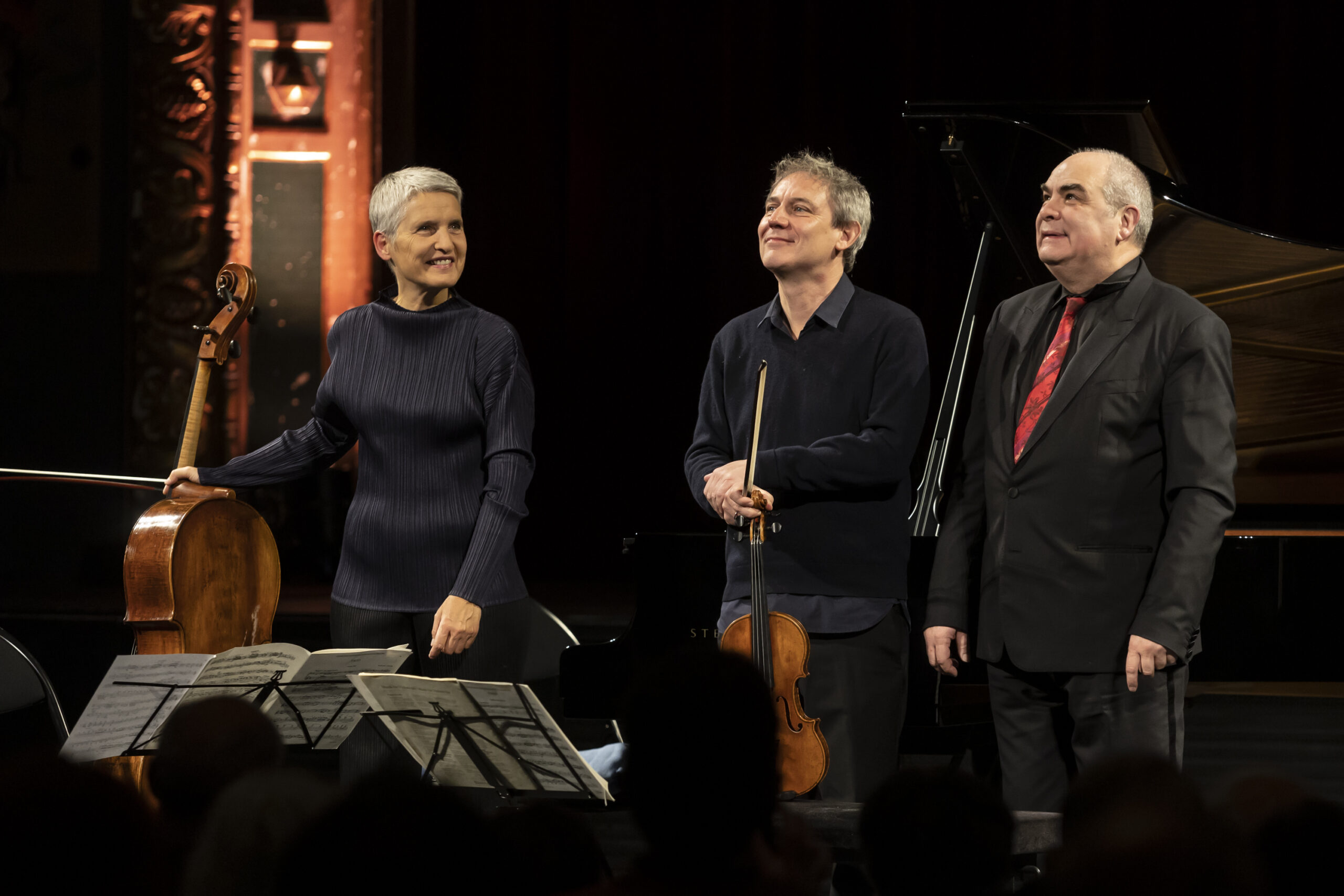 En écho au long quatrième mouvement, composé par Schubert un an avant sa mort précoce en 1828, le trio propose en bis l'Allegretto ma non troppo de l'Opus 70 n°2 de Beethoven, autre pièce qui, comme le dit Philippe Cassard « n'en finit pas de finir » et où l'on entend déjà, comme un passage de relais entre ces deux compositeurs majeurs, les futures cascades de notes du susnommé Impomptu schubertien. Comme on s'y attendait avec ces trois artistes : un grand moment de musique.