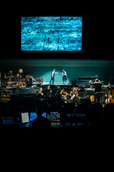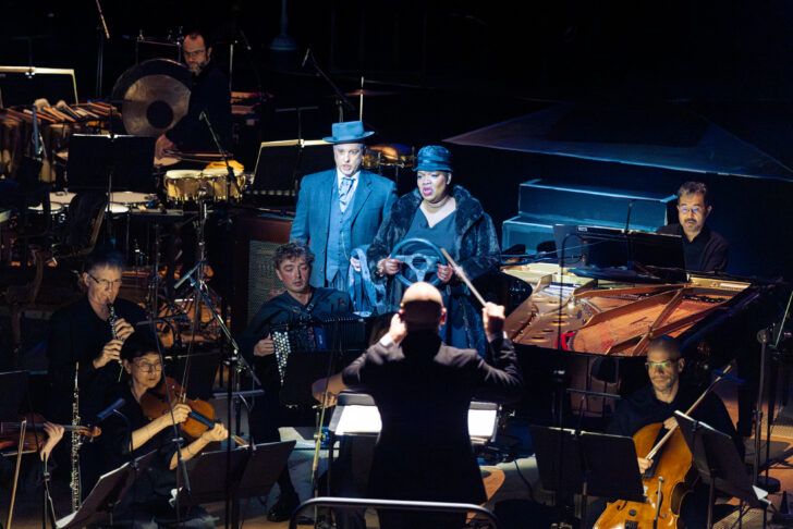 Paris. Cité de la Musique. 3-X-2025. Ramon Lazkano (né en 1968) : La main gauche, opéra en trois actes pour trois voix et ensemble d’après le roman Ravel de Jean Echenoz sur un livret de Ramon Lazkano. Mise en espace : Béatrice Lachaussée. Scénographie, costumes et vidéo : Mathieu Crescence. Habilleuse : Églantine Manches. Ingénieur du son : Clément Marie. Peter Tantsits, ténor ; Maire-Laure Garnier, soprano ; Allen Boxer, baryton ; Ensemble intercontemporain, direction : Pierre Bleuse