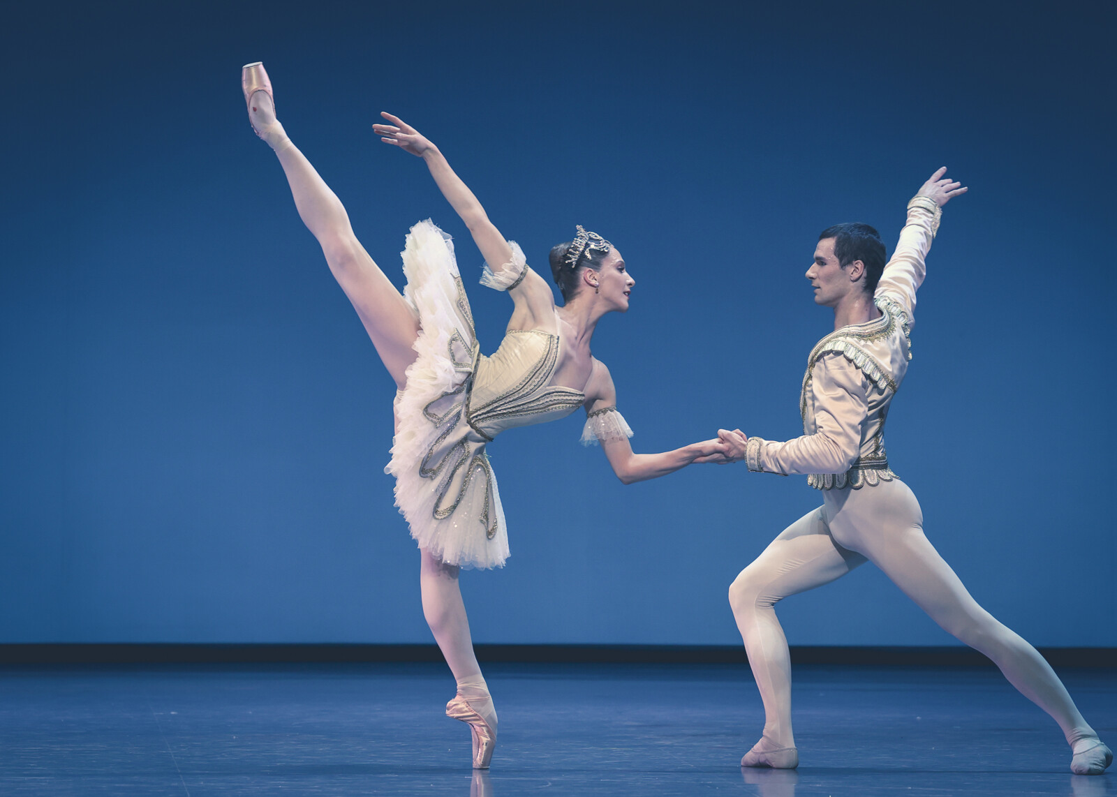 Valentine Colasante et Paul Marque, Étoiles scintillantes mais pas lumineuses, auraient dû remarquer qu'au-dessus d'eux, deux lustres brillaient. Ces accessoires, uniques éléments de décor, ne sont pas superflus : ils indiquaient juste qu'elles étaient au Bal, invitées à briller plus qu'il n'en faut. À plastronner, même. À prendre commande du plateau en faisant fi de la technique. Cela eût été d'autant plus nécessaire que tutus et pourpoints mauves et bleus, ayant pris un solide coup de vieux, ont aussi la mauvaise idée de se fondre dans le décor, un cyclo bleu vampirisant, faisant presque ton sur ton. Pour exister, les danseurs avaient d'autant plus obligation de se démarquer…