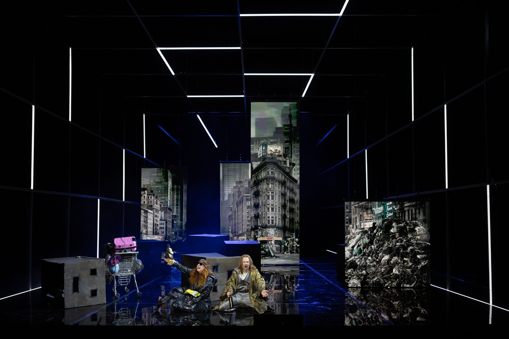 Metteur en scène inspiré, et bien connu du milieu opératique, est aussi le librettiste de Dorian Gray, s'avisant de transposer le roman fantastique d'Oscar Wilde dans le monde actuel des réseaux sociaux, paysage médiatique saturé d'images où le virtuel peut à tout moment se faire passer pour le réel. Risquant l'écart par rapport au roman (exit le personnage de Lord Wotton), Pountney n'en tient pas moins très fermement son propos, donnant à l'image, dans une mise en scène époustouflante, toute sa suprématie.