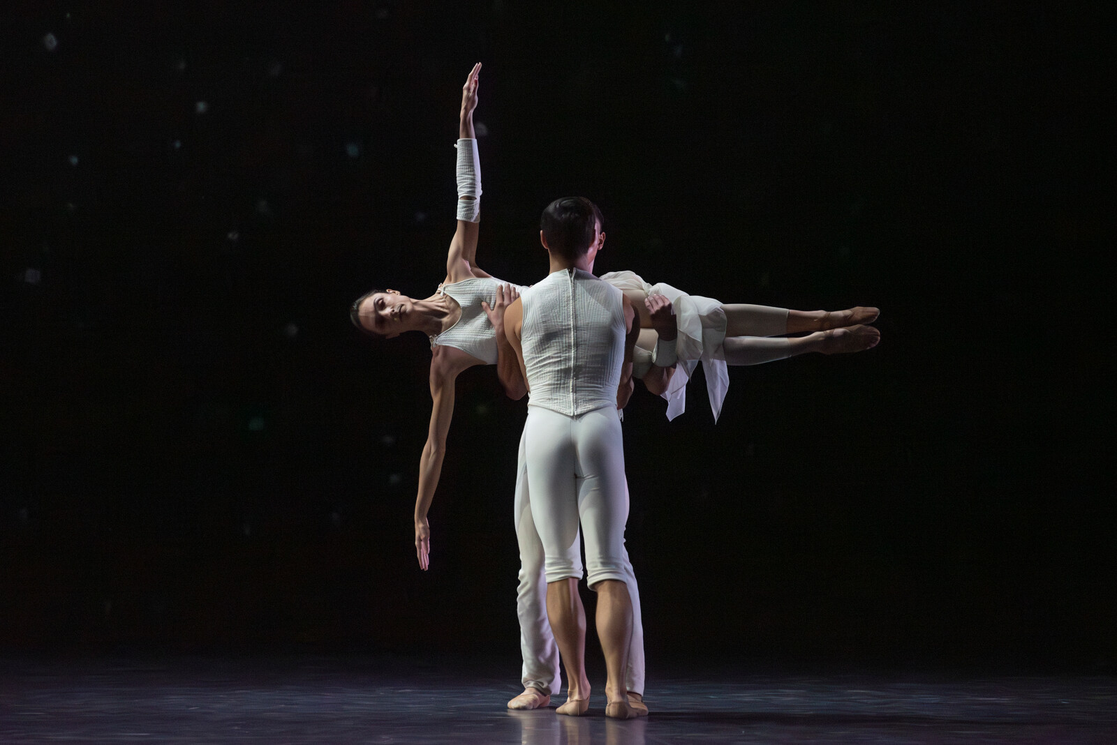 Valentine Colasante et Bleuenn Battistoni assurent les deux rôles féminins principaux, soutenues par la frise de quatre garçons, Paul Marque, Marc Moreau, Germain Louvet et Andrea Sarri, nommé premier danseur au début de l'année, qui, puissant et félin, est une révélation. Cette distribution de Première offre un très beau mélange des générations entre jeunes étoiles et premiers danseurs et des étoiles plus confirmés, hyper solides et fiables. Une remarquable technique et une confiance absolue des danseurs entre eux sont en effet nécessaires pour assurer ces portés d'une main.
